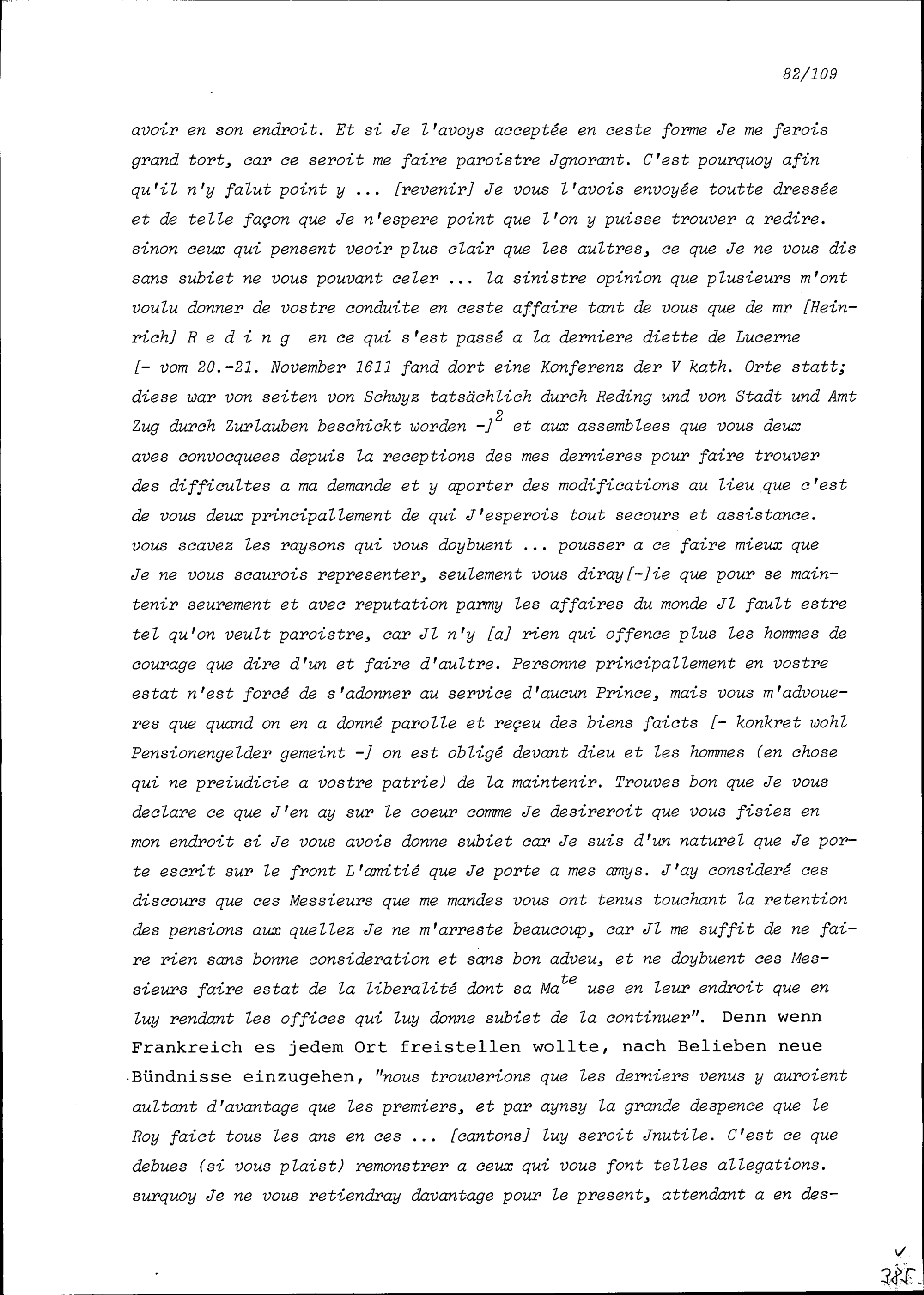 Schreiben von Pierre Jeannin de Castille, Ambassador von Frankreich, an Konrad III. Zurlauben, Statthalter, Zug