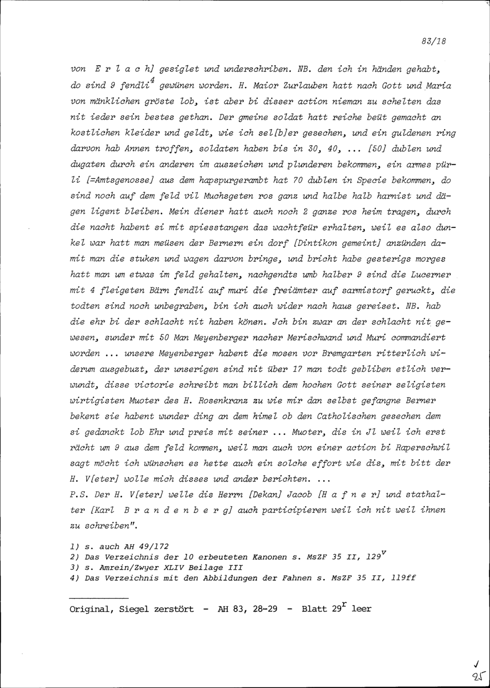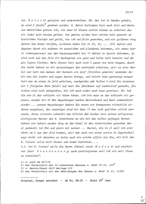 Schreiben von Johann Jakob Stocker, Pfarrer von Oberrüti und Feldgeistlicher, an Beat II. Zurlauben, Altammann und Stadt- und Amtrat, Zug