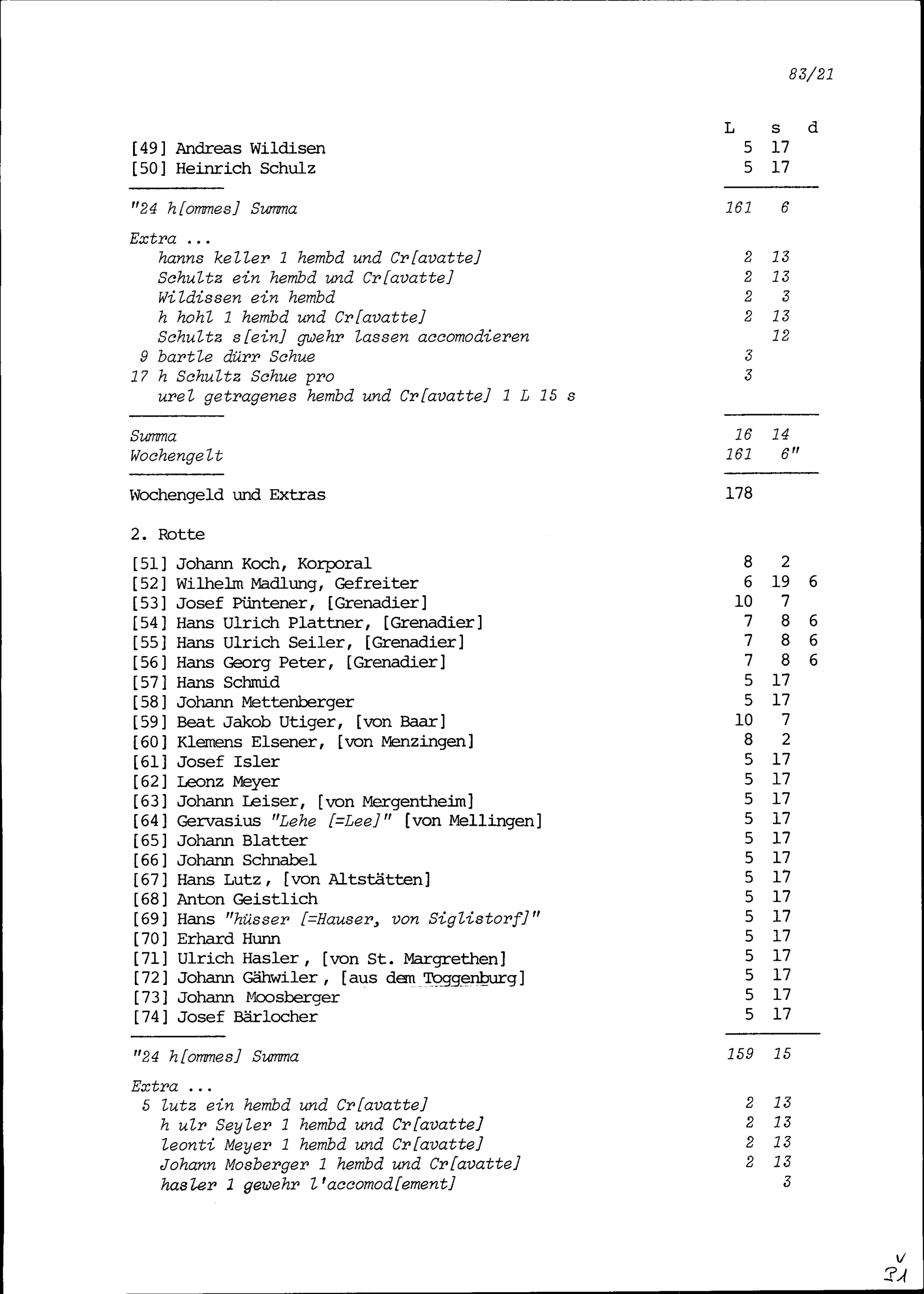 Mannschaftsrodel der Kompanie von Beat Jakob II. Zurlauben im Regiment Pfyffer