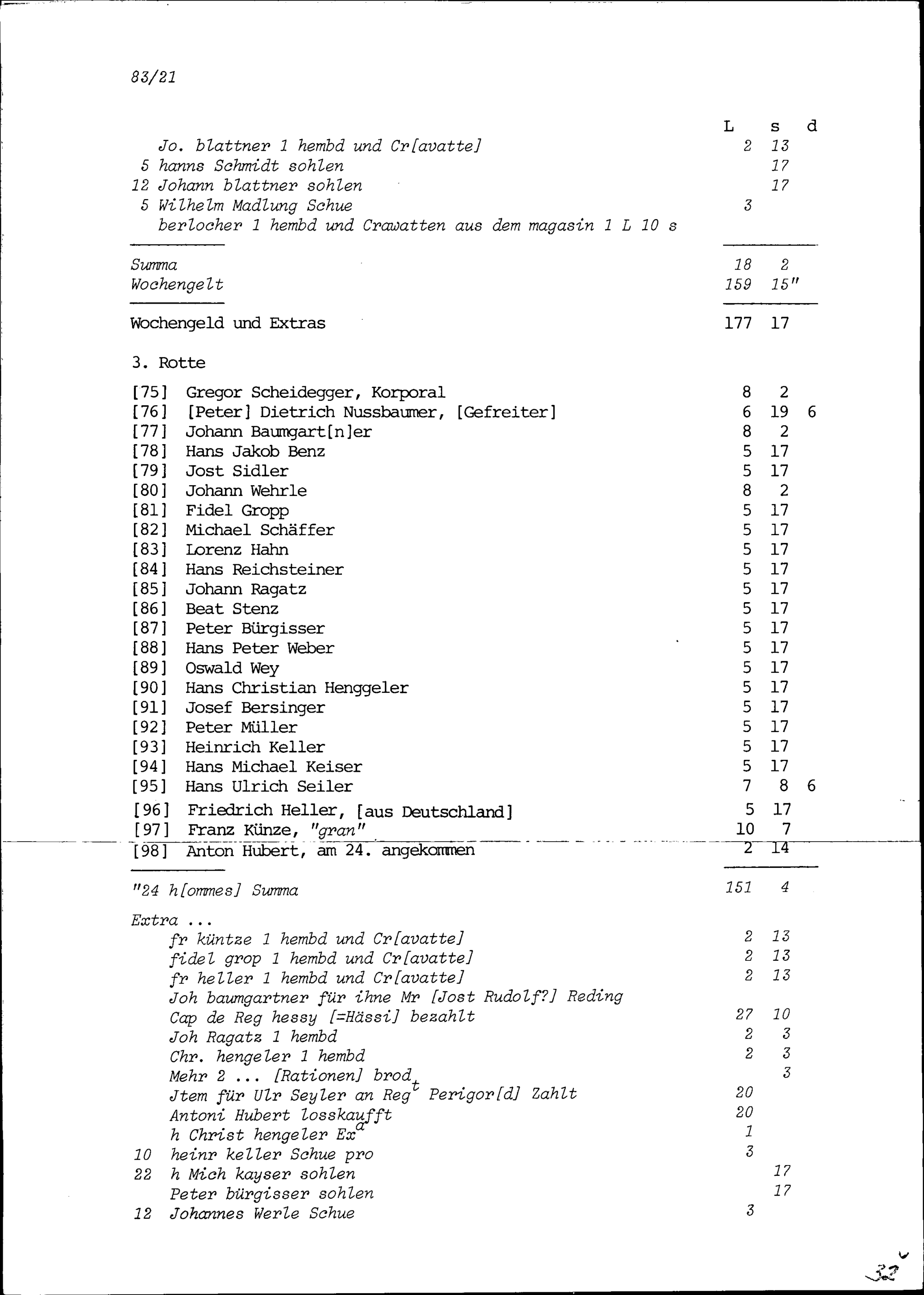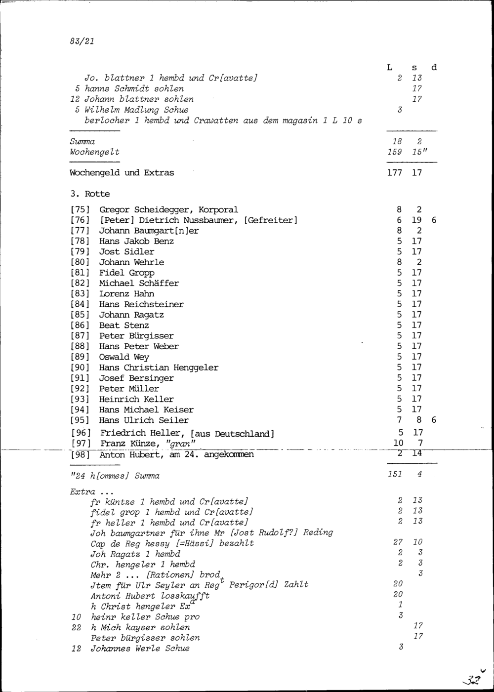 Mannschaftsrodel der Kompanie von Beat Jakob II. Zurlauben im Regiment Pfyffer