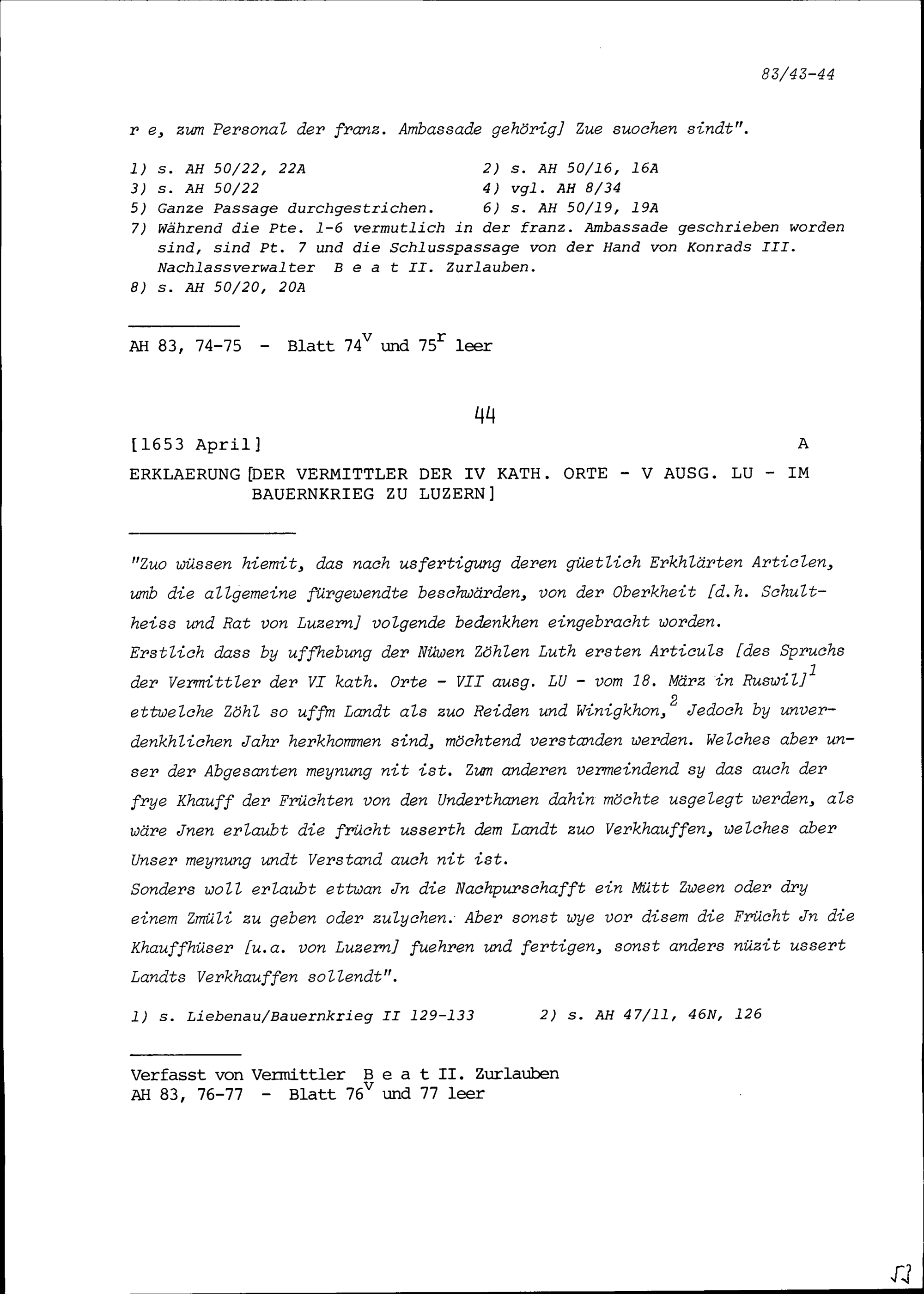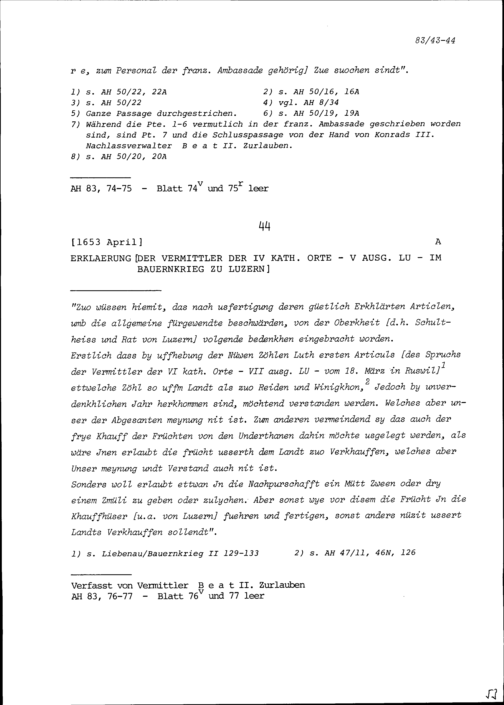 Erklärung der Vermittler der Vier Katholischen Orte im Bauernkrieg zu Luzern