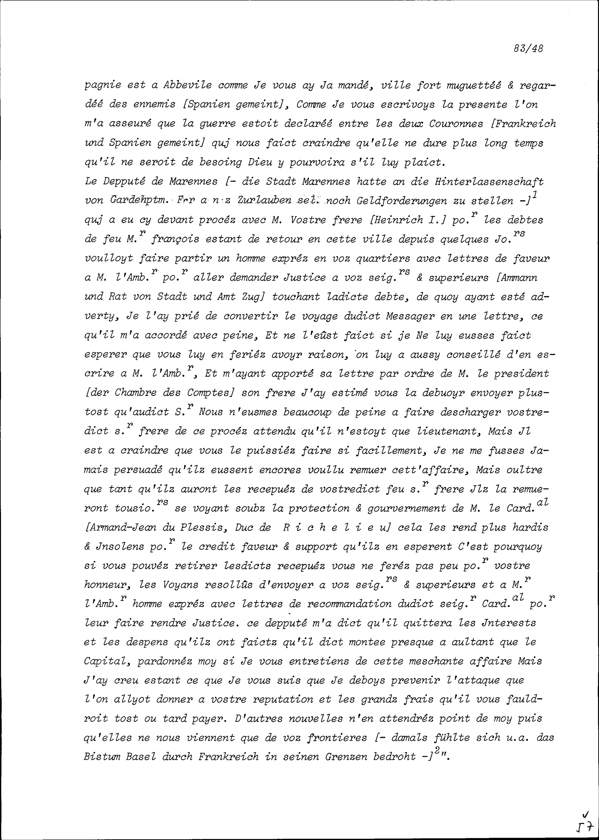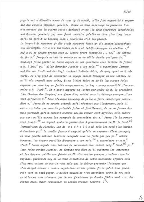 Schreiben von Barthélémy Rolland an Beat II. Zurlauben, Altammann und Stadt- und...