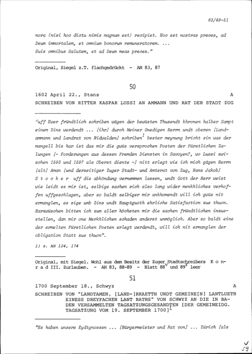 Schreiben von Kaspar Lussi an Ammann und Rat der Stadt Zug