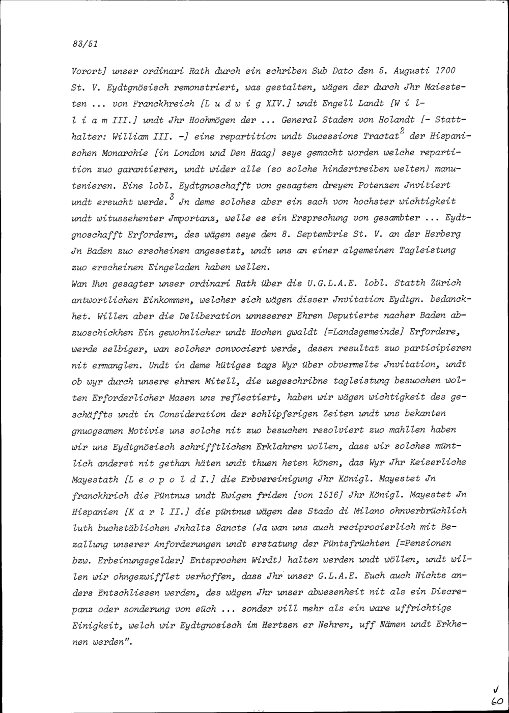 Schreiben des Landammanns und Landrats von Schwyz an die Tagsatzungsgesandten der Tagsatzung vom 19. September 1700