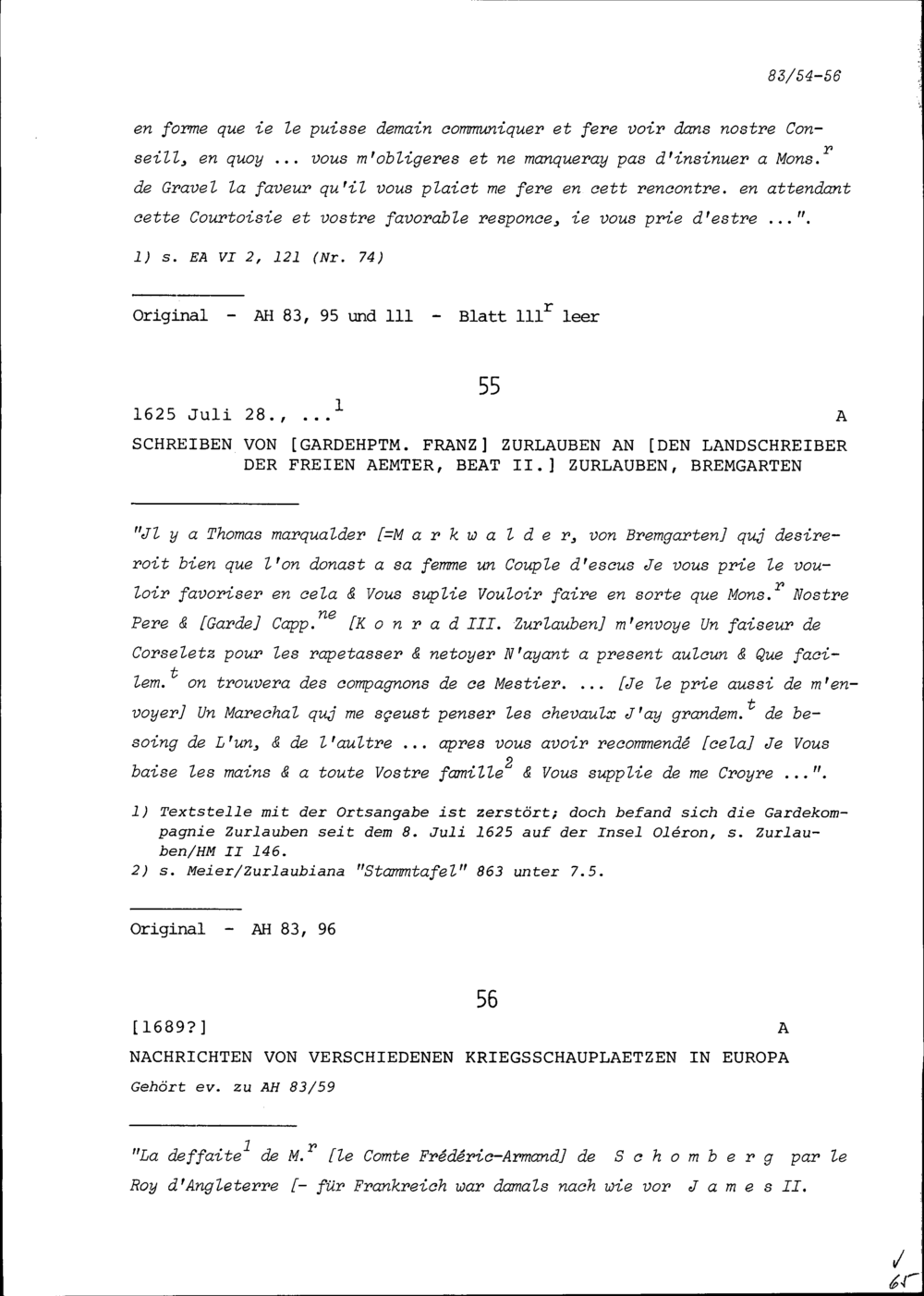 Schreiben von Franz Zurlauben, Gardehauptmann, an Beat II. Zurlauben, Landschreiber der Freien Ämter, Bremgarten