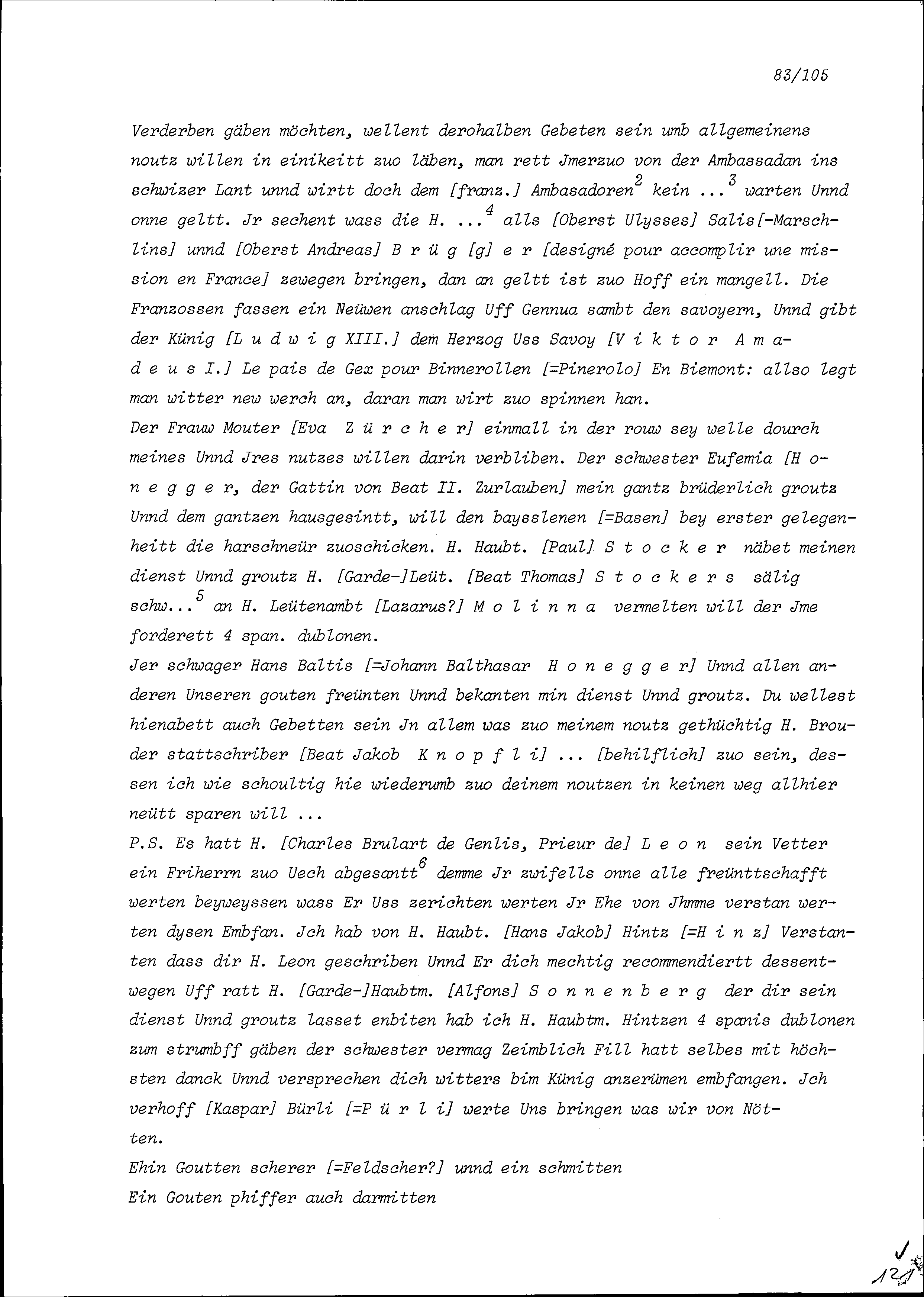 Schreiben von Heinrich I. Zurlauben, Gardeleutnant, an Beat II. Zurlauben, Stadt-...