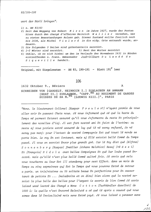 Schreiben von Heinrich I. Zurlauben, Gardeleutnant, an Beat II. Zurlauben, Ammann...