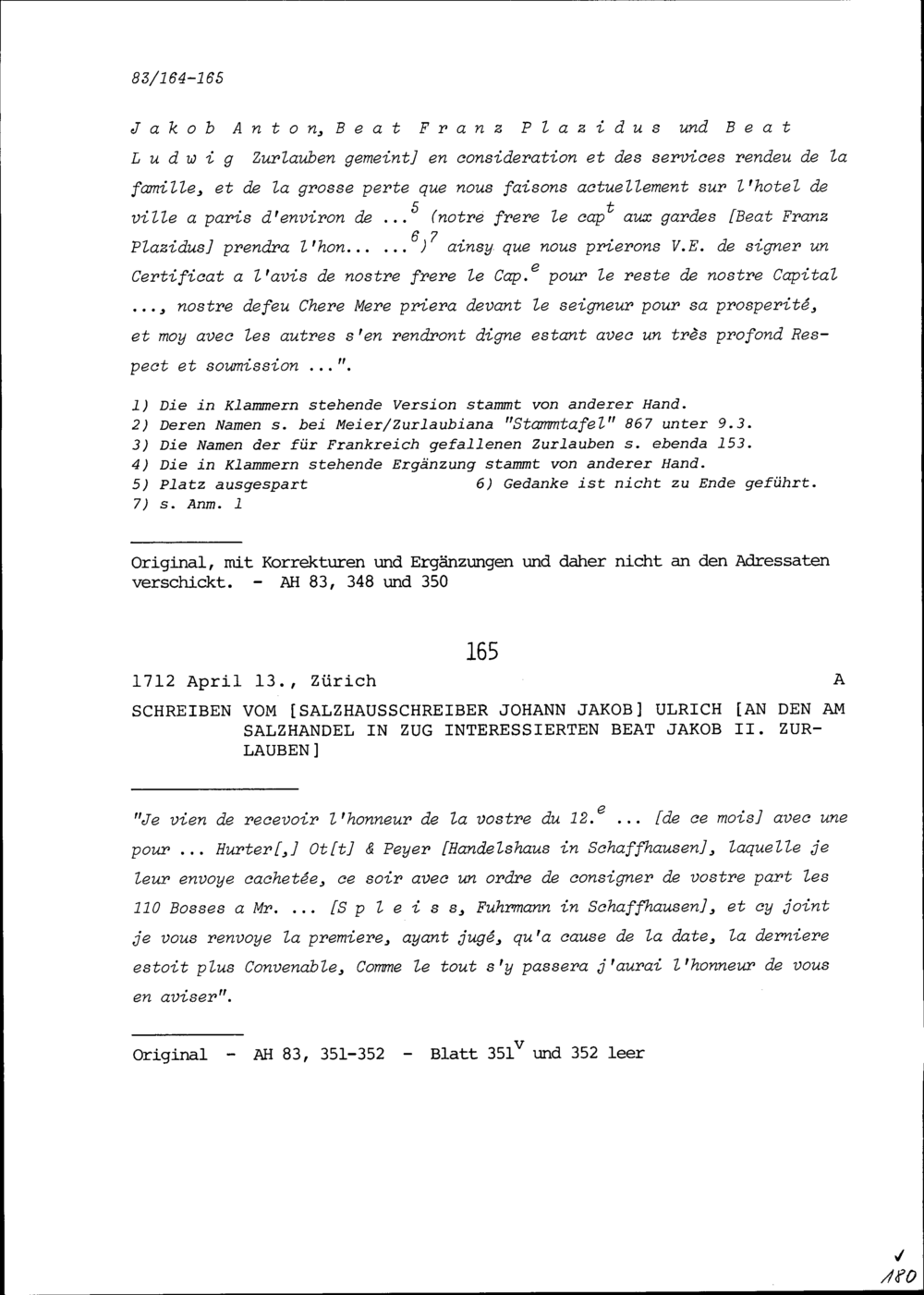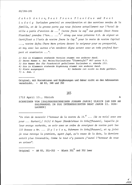 Schreiben von Johann Jakob Ulrich, Salzhausschreiber, an Beat Jakob II. Zurlaube...