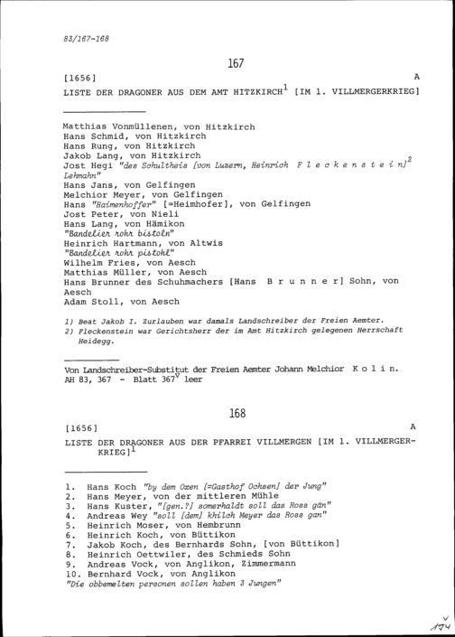 Dragoner aus dem Amt Hitzkirch im Ersten Villmergerkrieg