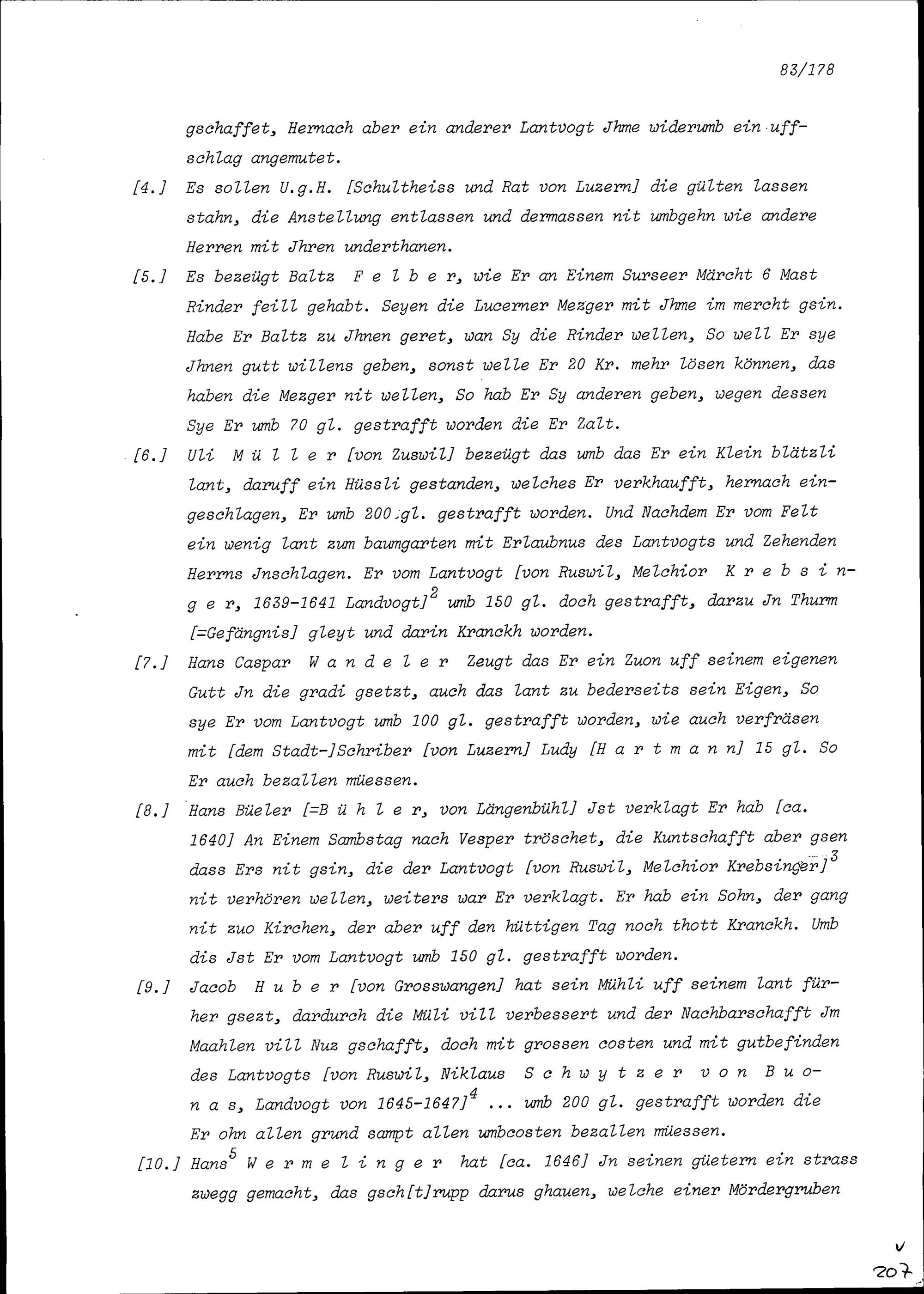 Klagen des Amts Ruswil im Bauernkrieg wider Schultheiss und Rat Luzern