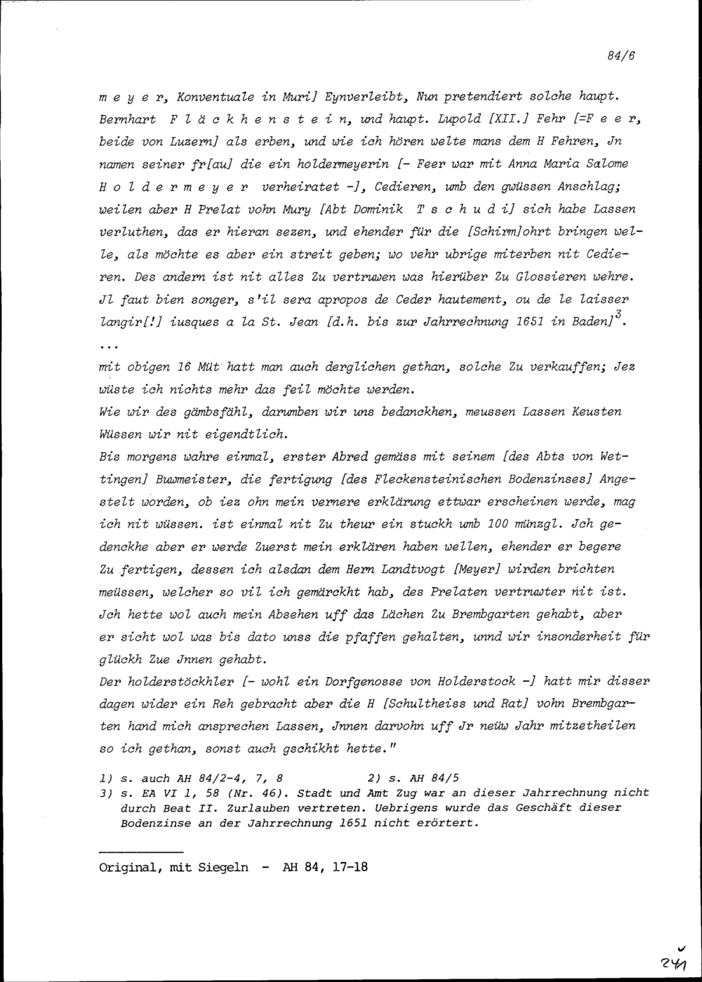 Schreiben von Beat Jakob I. Zurlauben, Landschreiber der Freien Ämter, an Beat II....