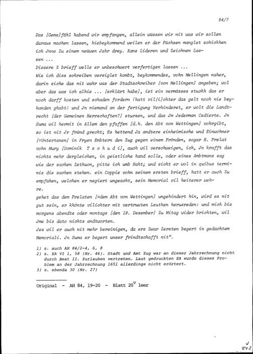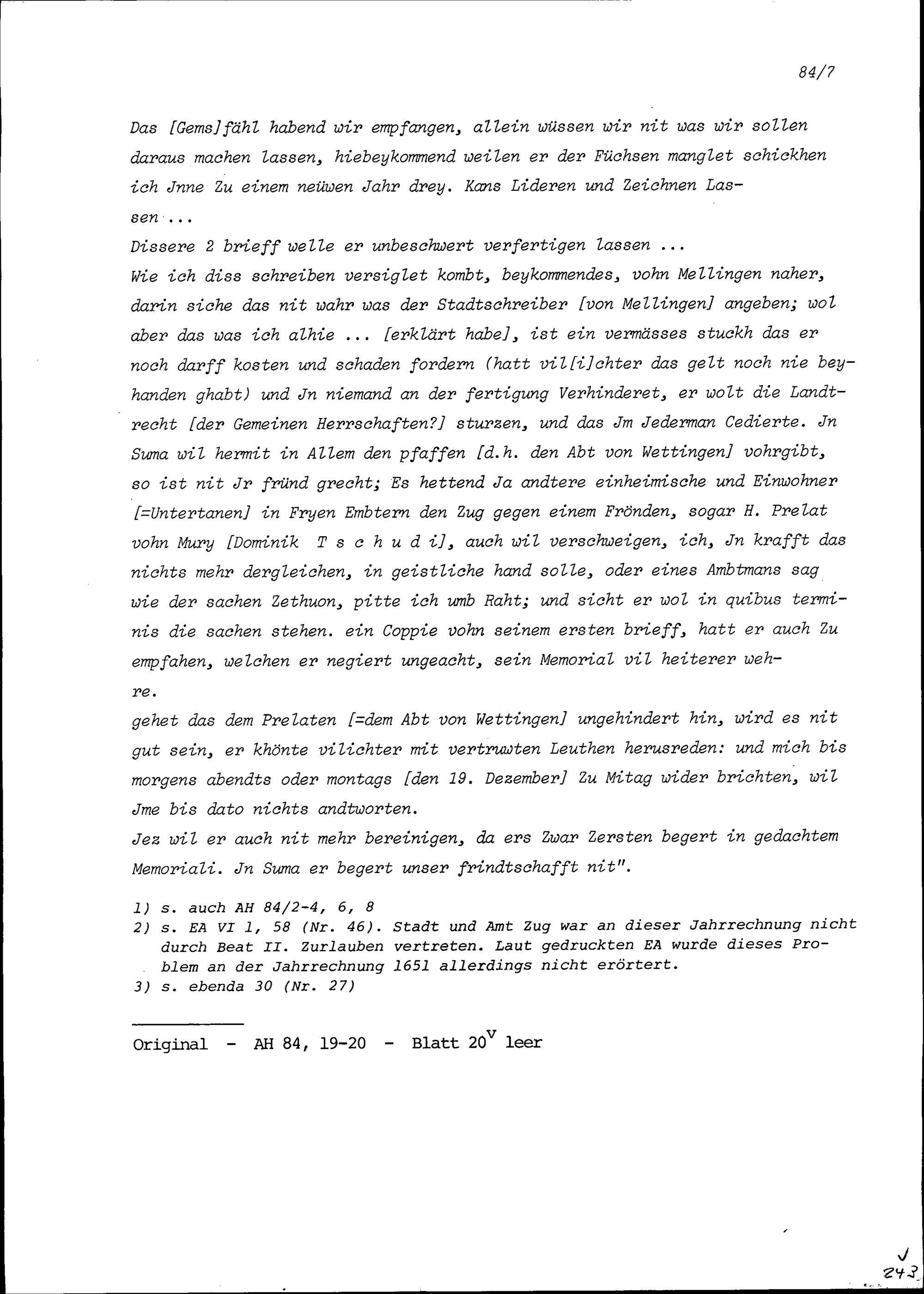Schreiben von Beat Jakob I. Zurlauben, Landschreiber der Freien Ämter, an Beat II....