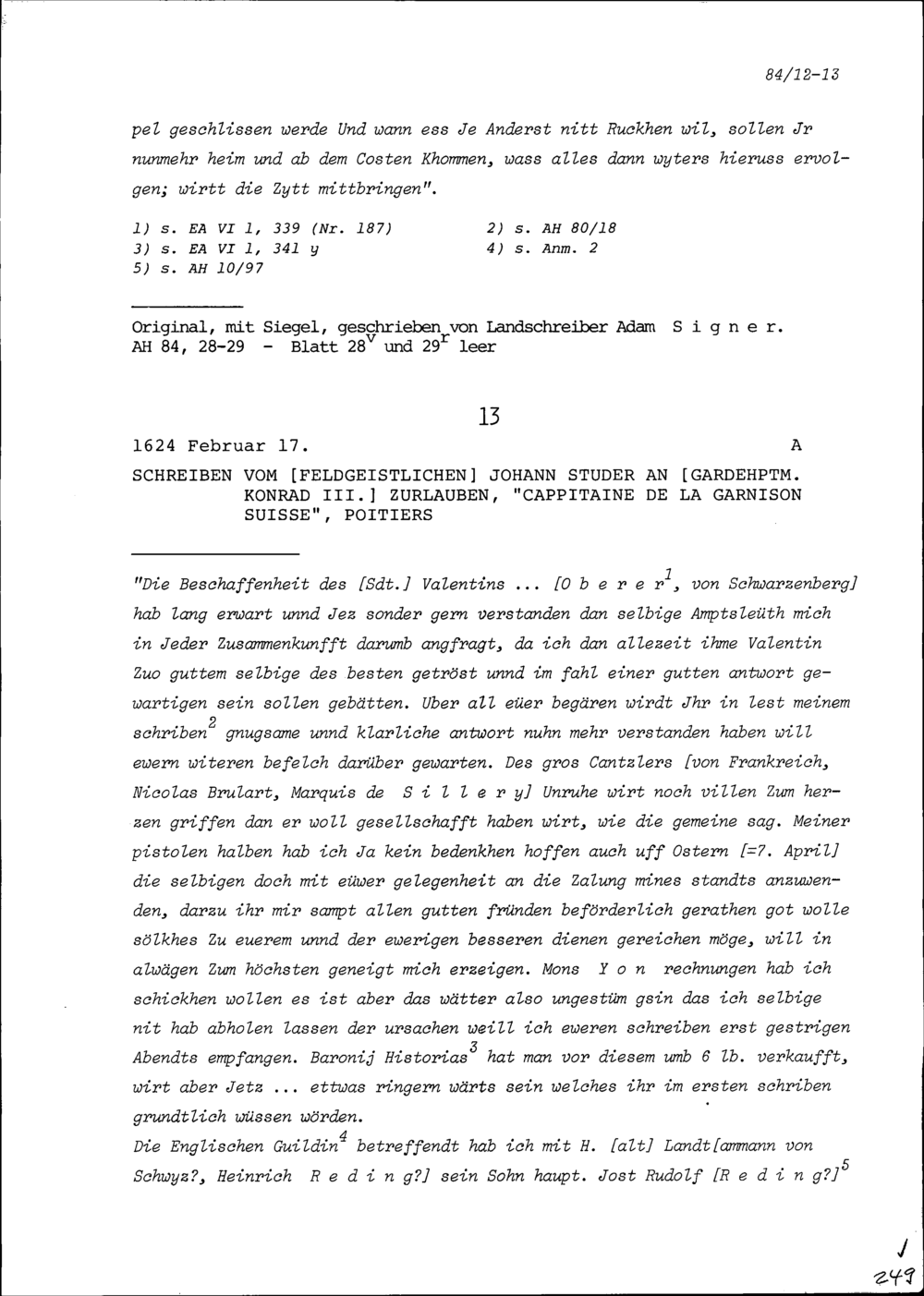 Schreiben von Johann Studer, Feldgeistlicher, an Konrad III. Zurlauben, Gardehauptmann, Poitiers