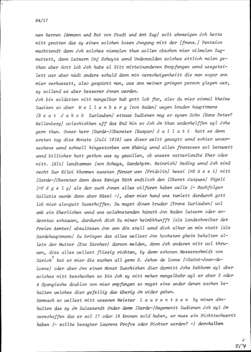 Schreiben von Konrad III. Zurlauben, Gardehauptmann, an Beat II. Zurlauben