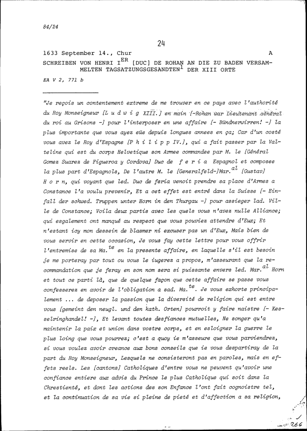 Schreiben von Henri I. Duc de Rohan die Tagsatzungsgesandten der Dreizehn Orte
