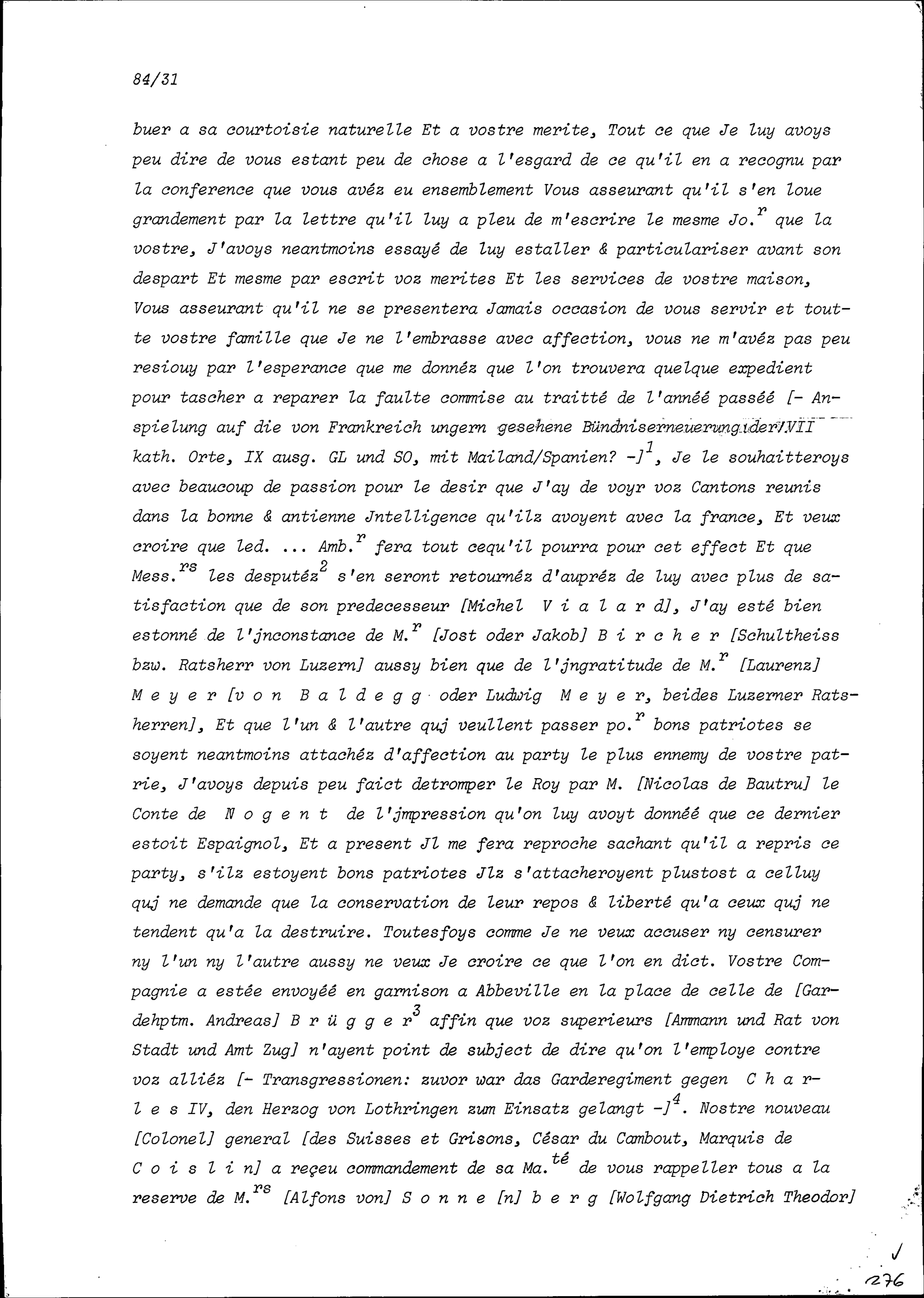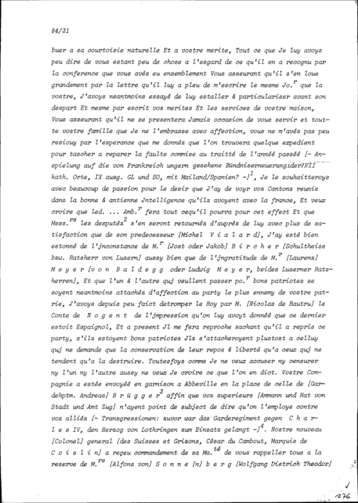 Schreiben von Barthélémy Rolland an Beat II. Zurlauben, Ammann und Hauptmann, Zu...
