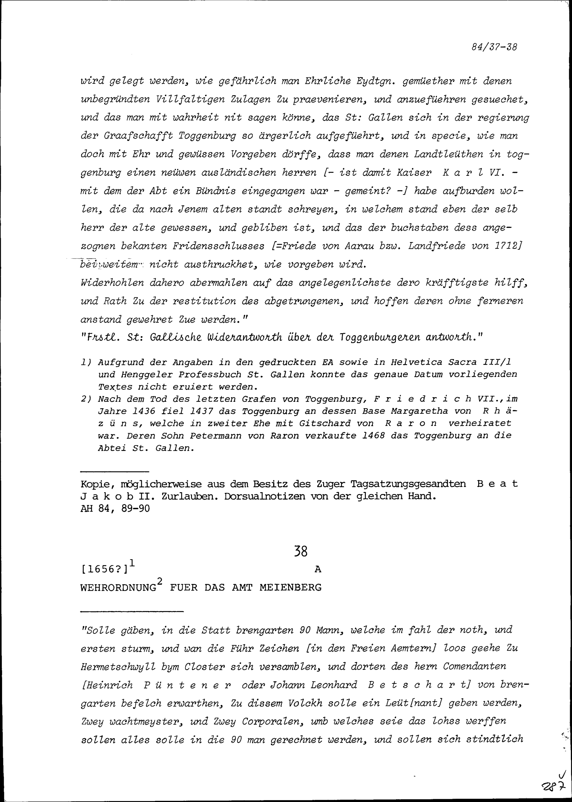 Wehrordnung für das Amt Meienberg