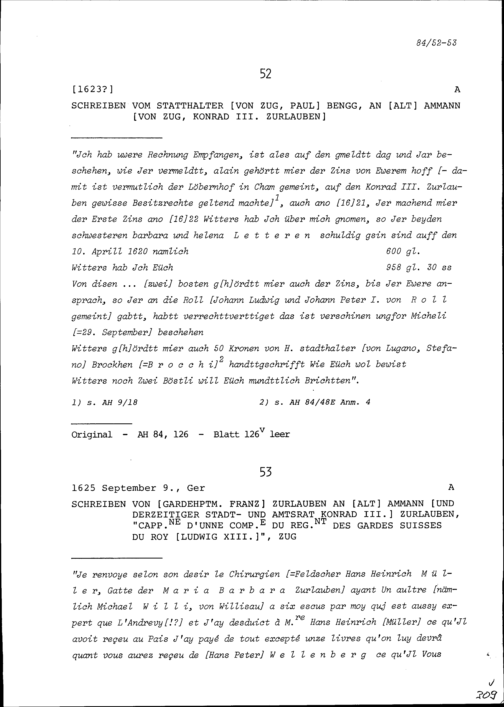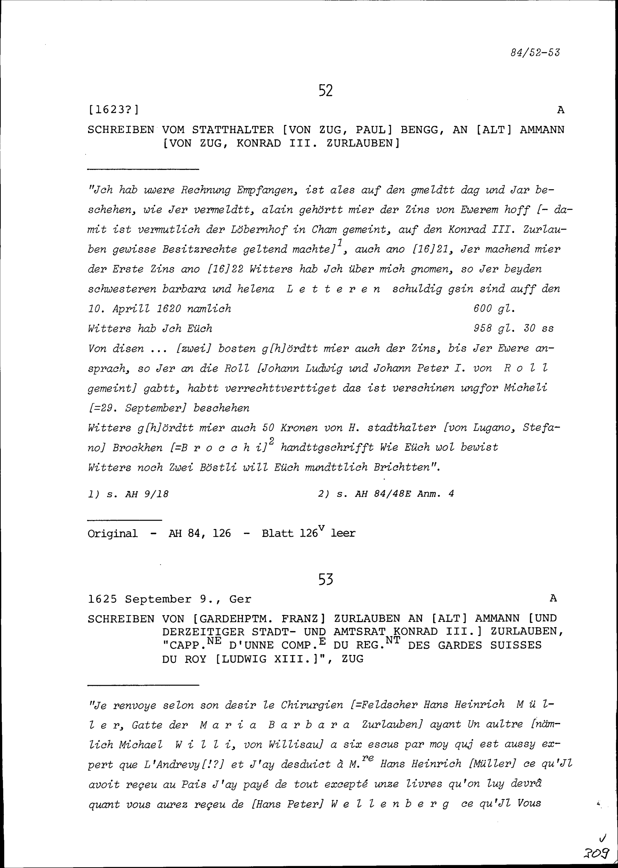 Schreiben von Paul Bengg, Statthalter von Zug und Hauptmann, an Konrad III. Zurlauben,...