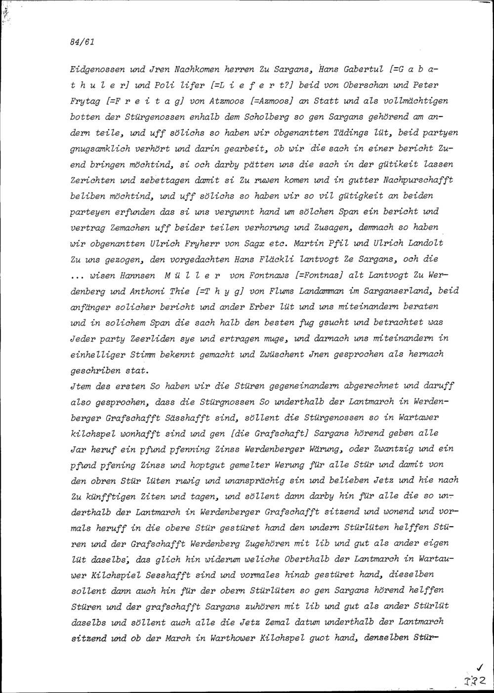 Urkunde in Zusammenhang mit Streitigkeiten zwischen der Grafschaft Sargans einerseits und der Herrschaft Wartau und der Grafschaft Werdenberg anderseits