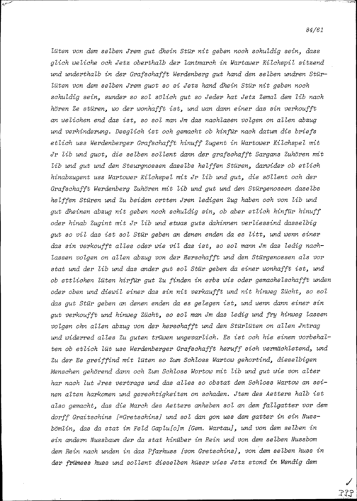 Urkunde in Zusammenhang mit Streitigkeiten zwischen der Grafschaft Sargans einerseits und der Herrschaft Wartau und der Grafschaft Werdenberg anderseits