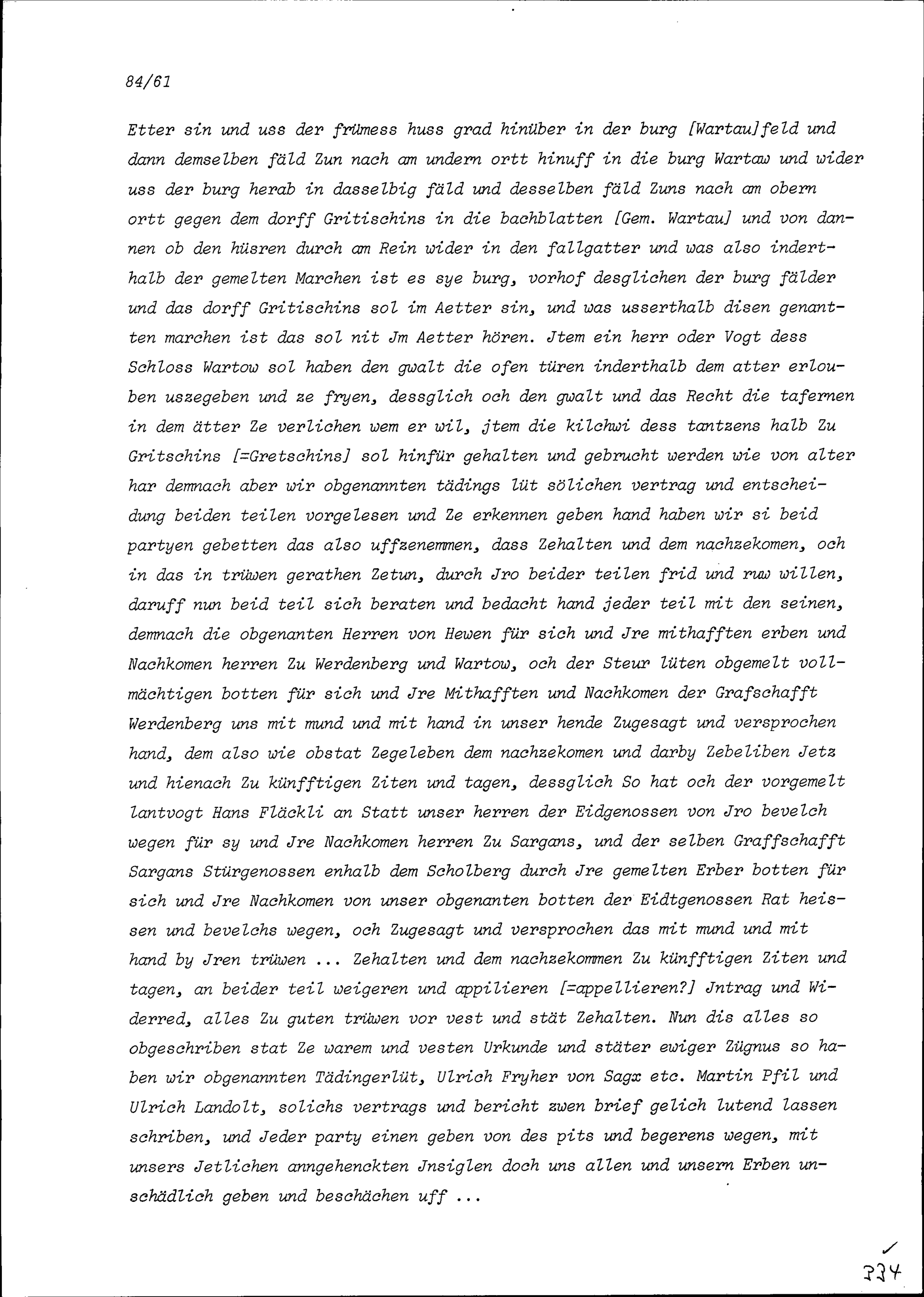 Urkunde in Zusammenhang mit Streitigkeiten zwischen der Grafschaft Sargans einerseits und der Herrschaft Wartau und der Grafschaft Werdenberg anderseits
