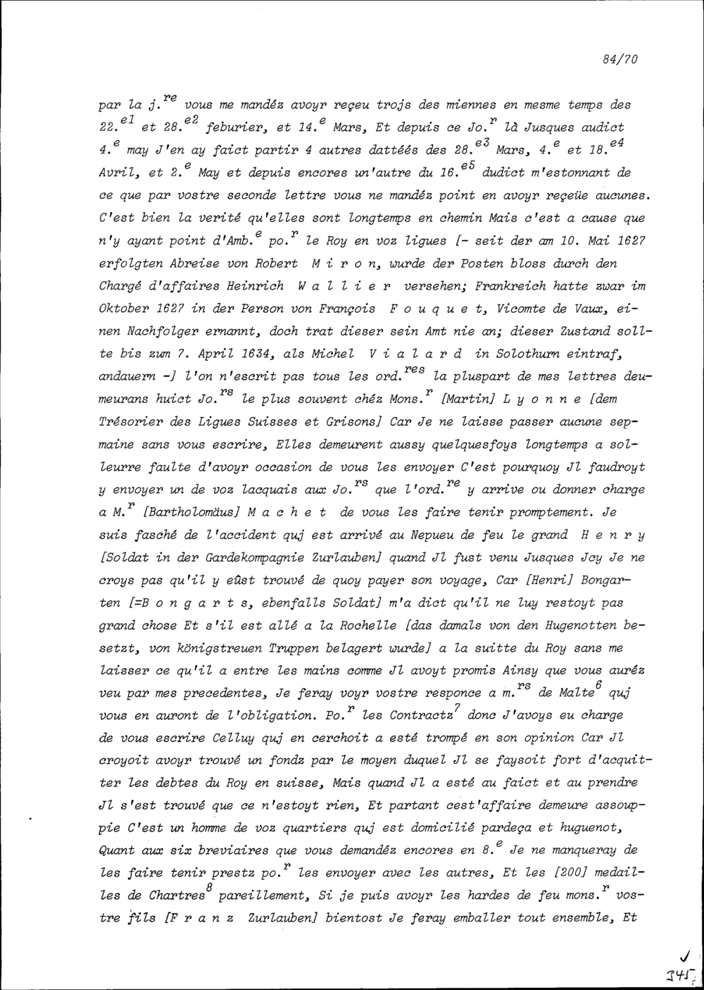 Schreiben von Barthélémy Rolland an Konrad III. Zurlauben, Hauptmann, Altammann und Stadt- und Amtrat, Zug