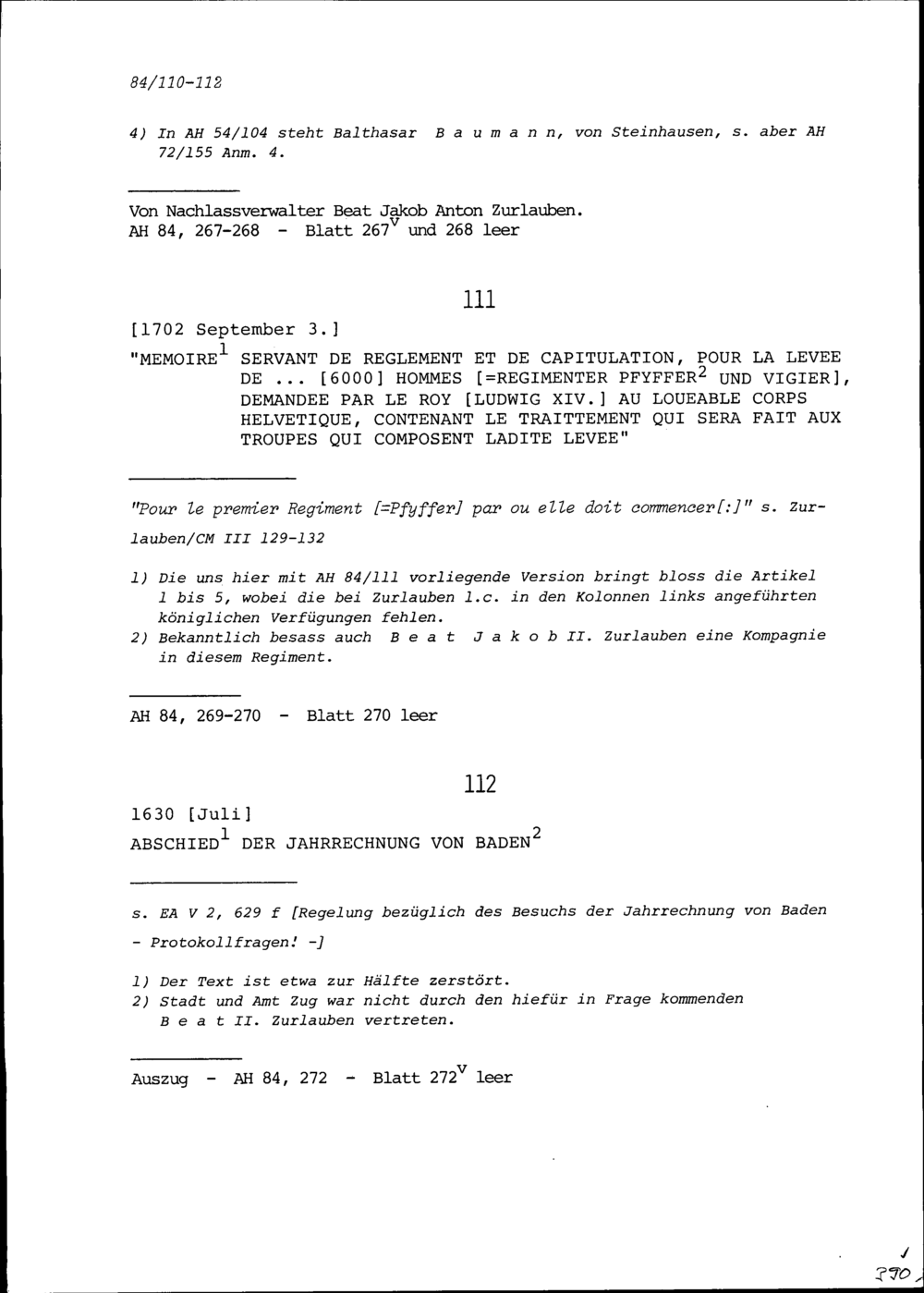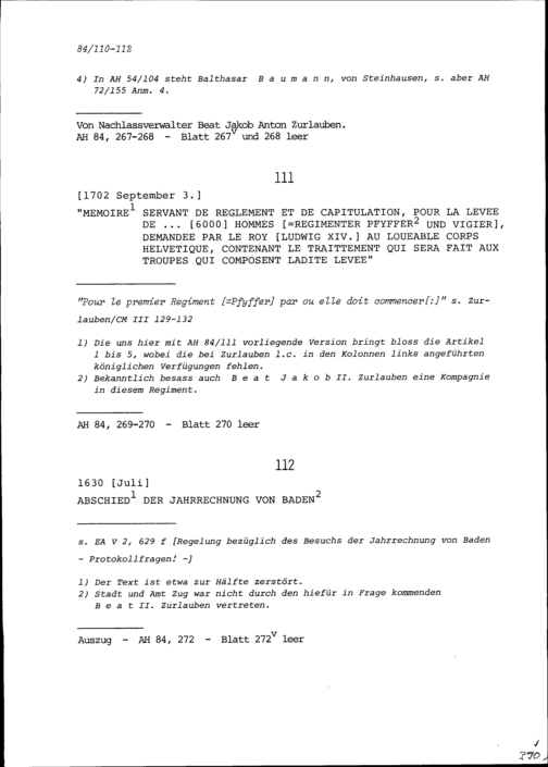 Notiz zu Reglement Kapitulation für die Aushebung von 6000 Männern für das Regiment Pfyffer und Vigier