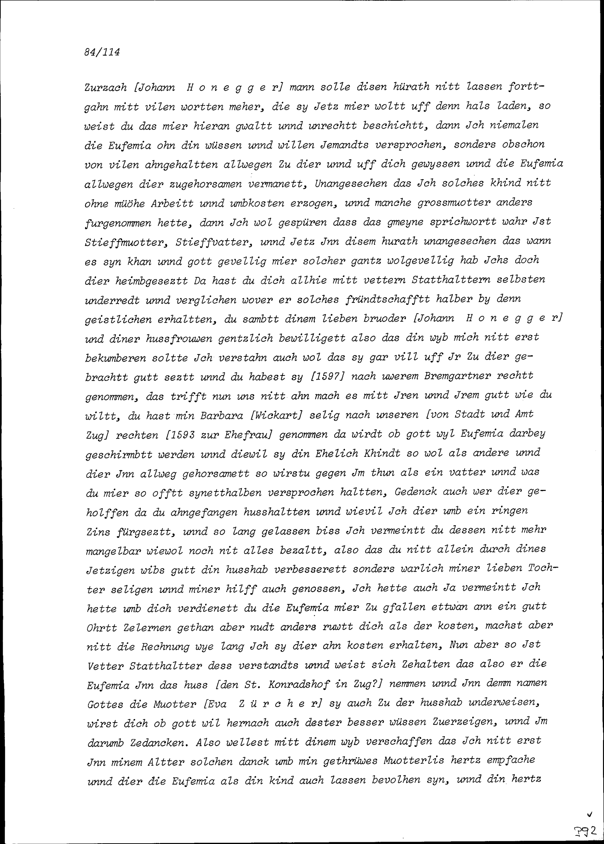 Schreiben von Dorothea Schell an Niklaus Honegger
