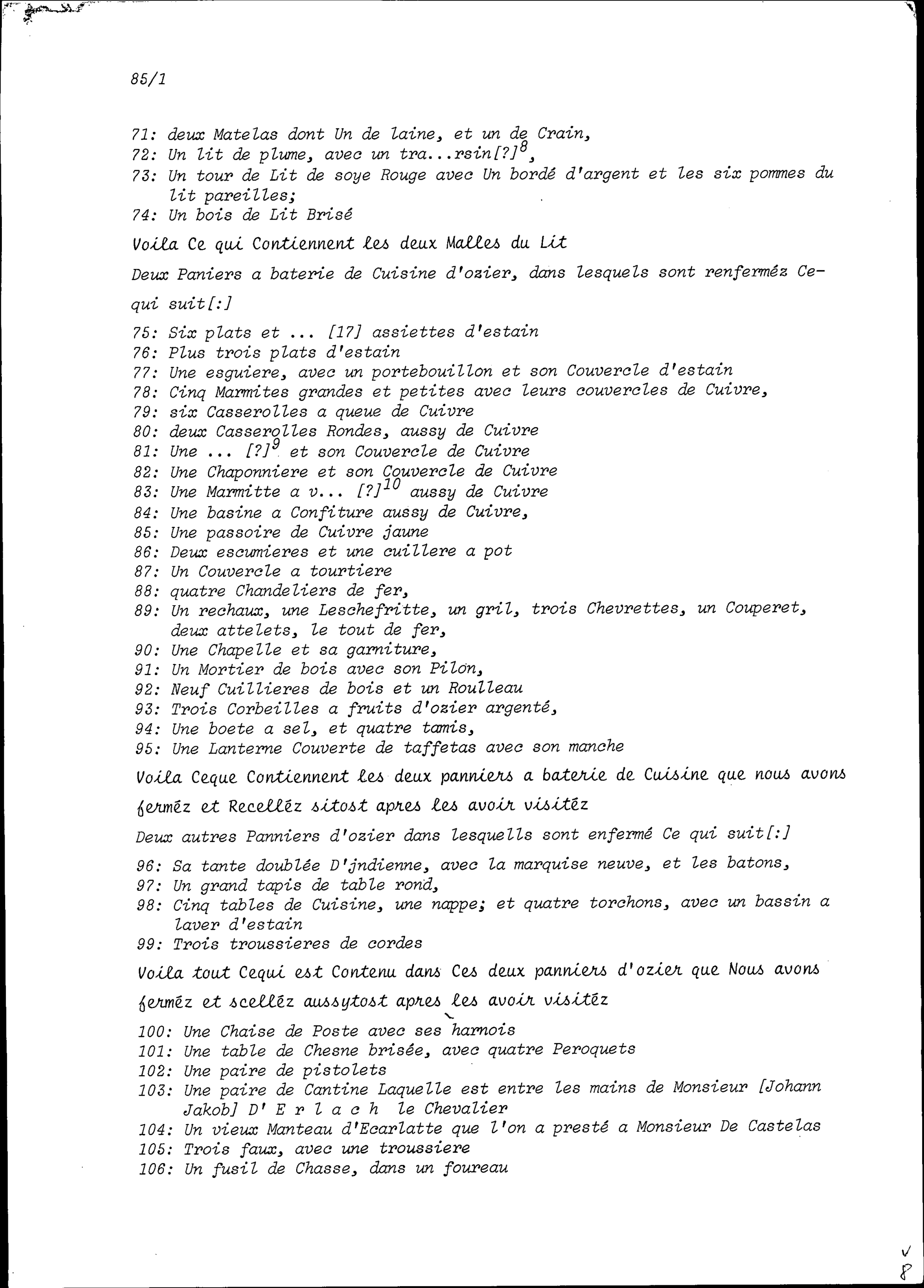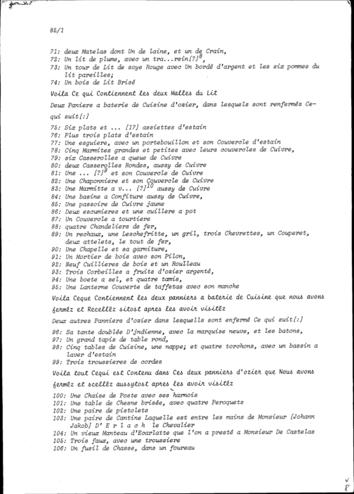 Inventar der Hinterlassenschaft von Beat Heinrich Josef Zurlauben, Gardehauptmann, aufgezeichnet von Karl Jakob von Besenval, Major, von Beat Franz Plazidus Zurlauben und von Felix Oswald Kolin, Leutnant, auf Anordnung von François-Nicolas-Albert Castella, Oberst