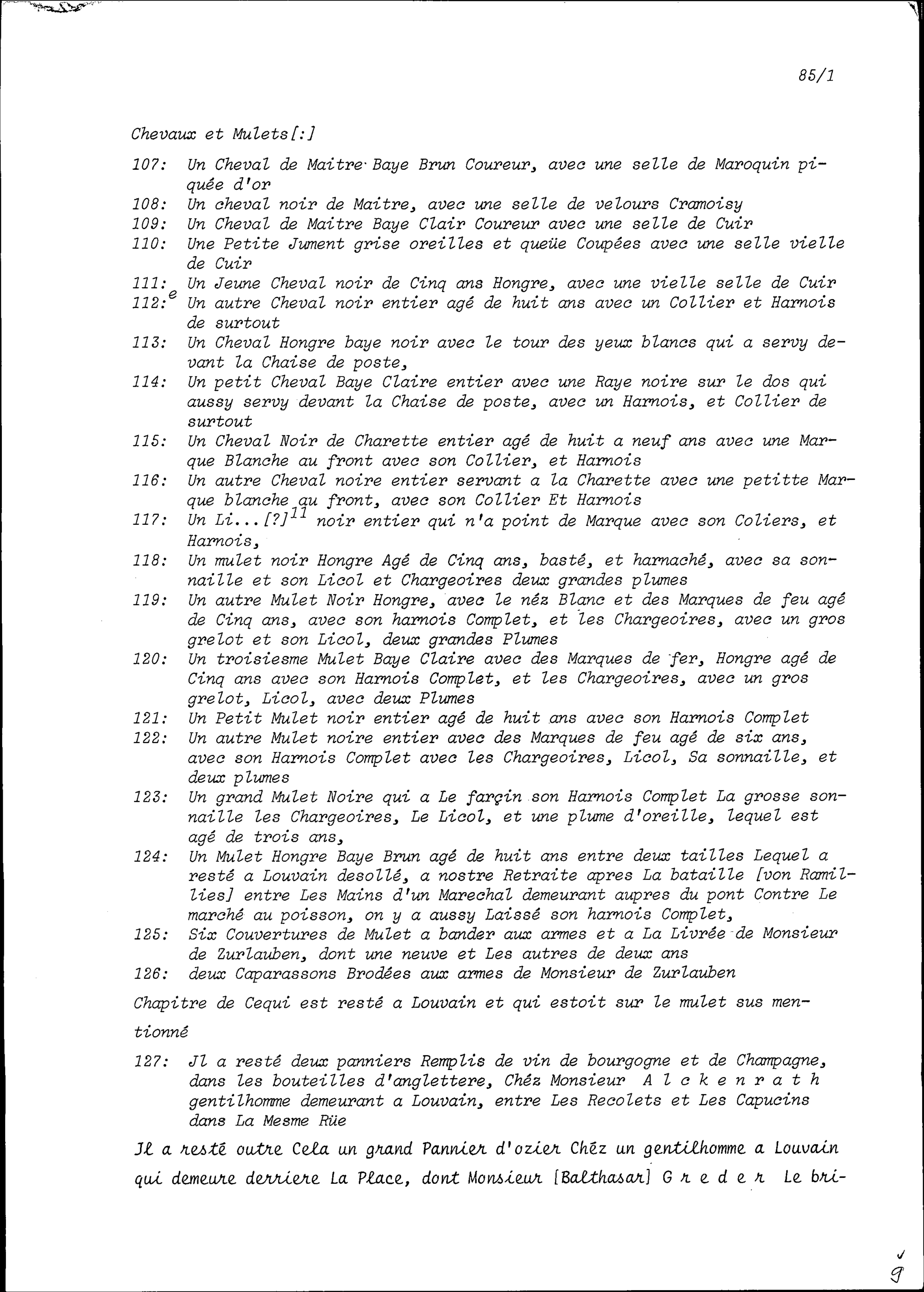 Inventar der Hinterlassenschaft von Beat Heinrich Josef Zurlauben, Gardehauptmann, aufgezeichnet von Karl Jakob von Besenval, Major, von Beat Franz Plazidus Zurlauben und von Felix Oswald Kolin, Leutnant, auf Anordnung von François-Nicolas-Albert Castella, Oberst