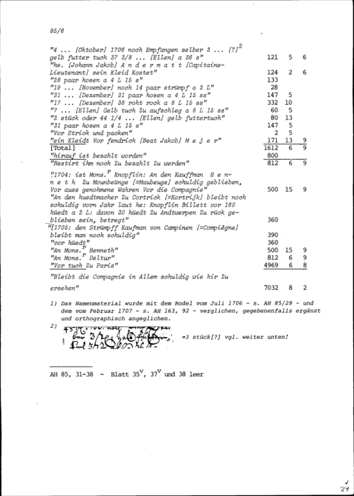 Soldaten der Kompanie von Beat Jakob II. Zurlauben im Regiment Pfyffer, die neue Röcke erhielten und den Vorrat an Tuch von Paris und Valenciennes