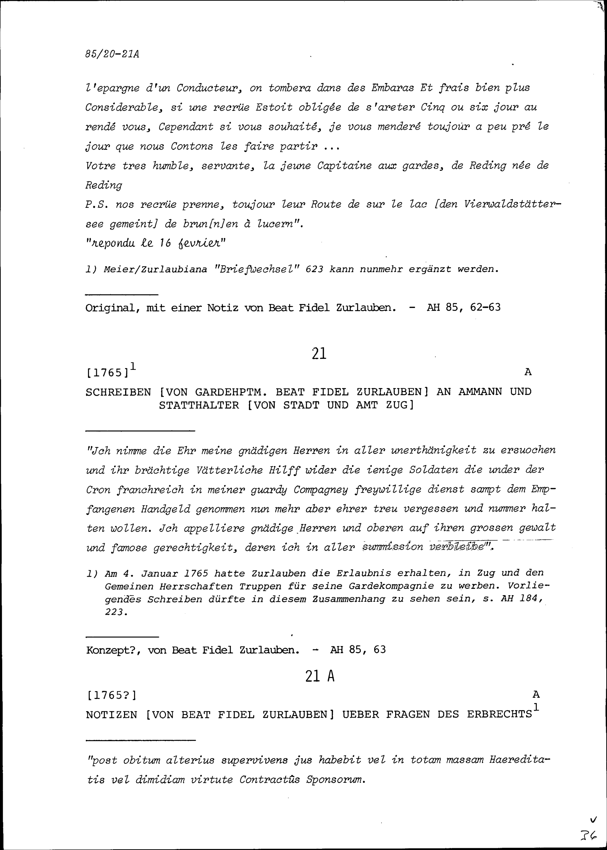 Schreiben von Beat Fidel Zurlauben, Gardehauptmann, an Ammann und Statthalter von...