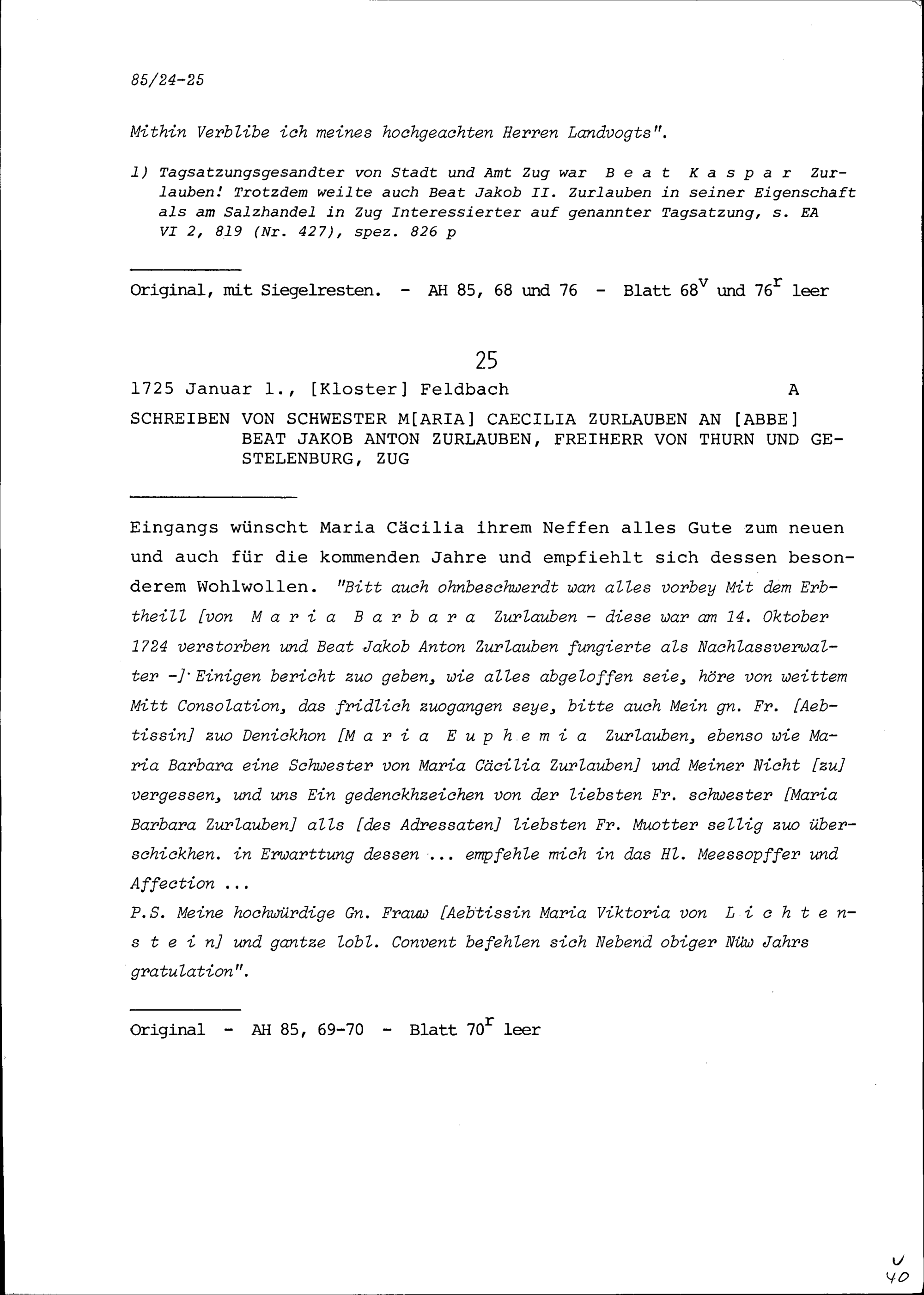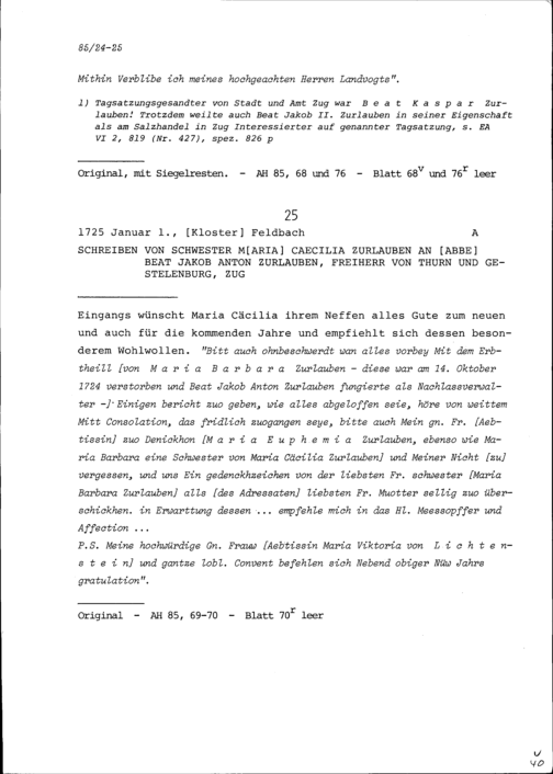 Schreiben von Maria Cäcilia Zurlauben, Klosterfrau, an Beat Jakob Anton Zurlauben, Priester, Zug