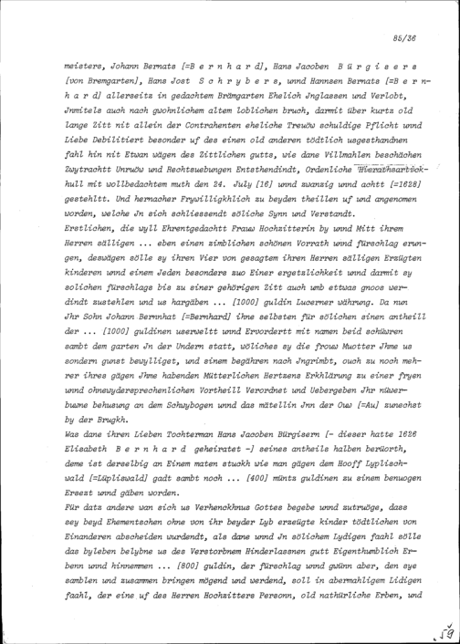 Ehevertrag zwischen Melchior Honegger, Wirt zum Engel in Bremgarten, und Verena Schriber