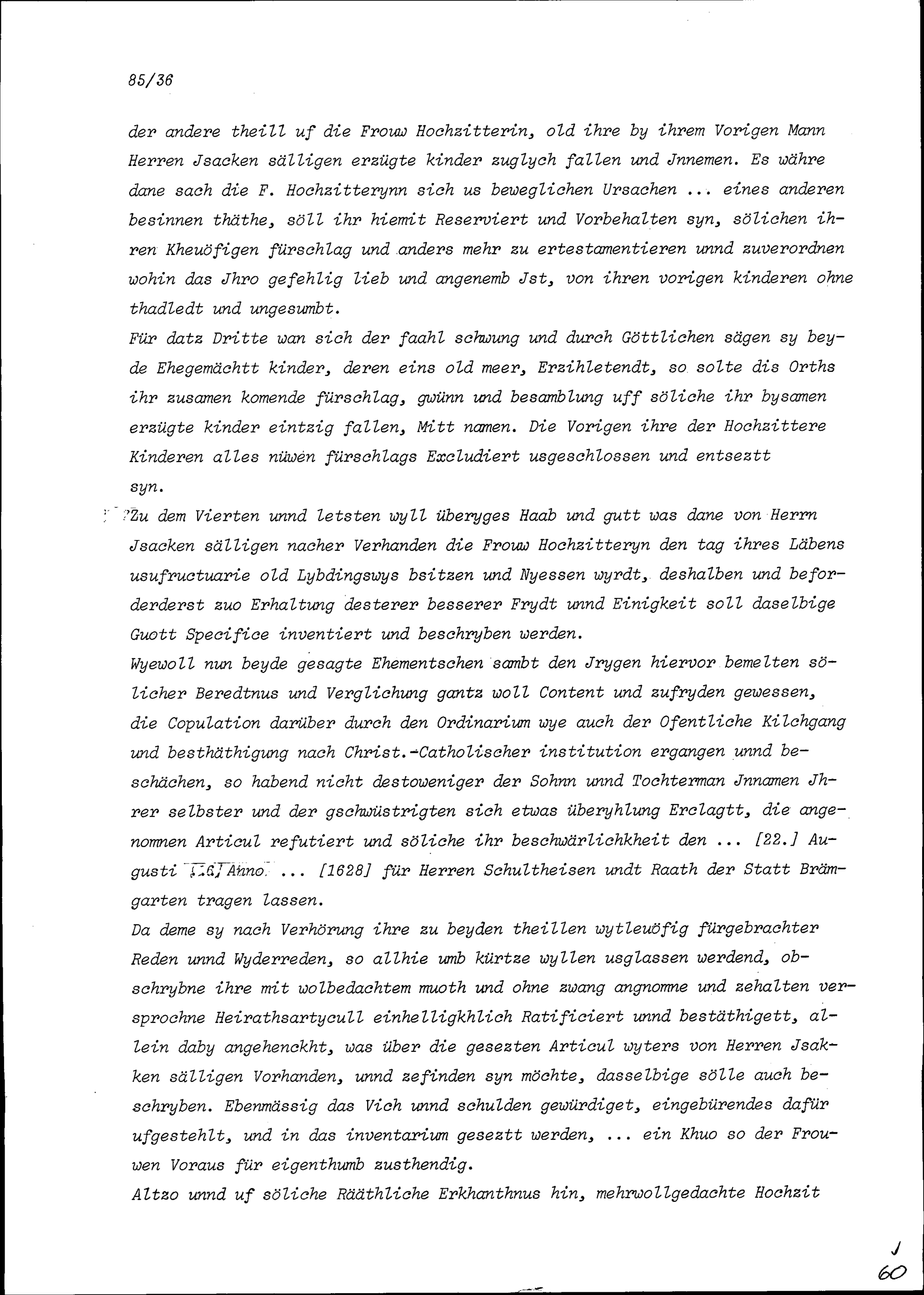 Ehevertrag zwischen Melchior Honegger, Wirt zum Engel in Bremgarten, und Verena Schriber