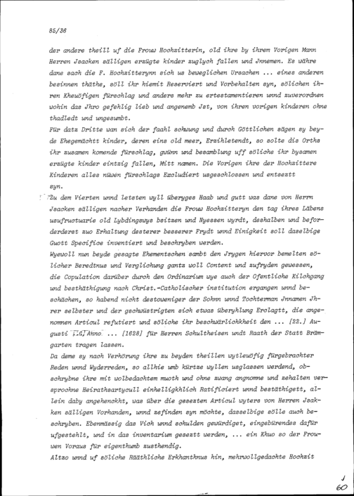 Ehevertrag zwischen Melchior Honegger, Wirt zum Engel in Bremgarten, und Verena ...