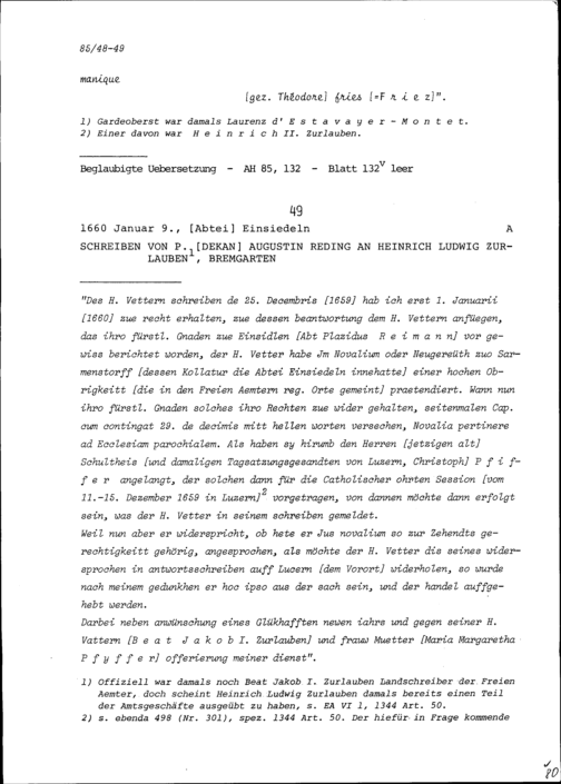 Schreiben von Augustin Reding, Dekan, an Heinrich Ludwig Zurlauben, Bremgarten