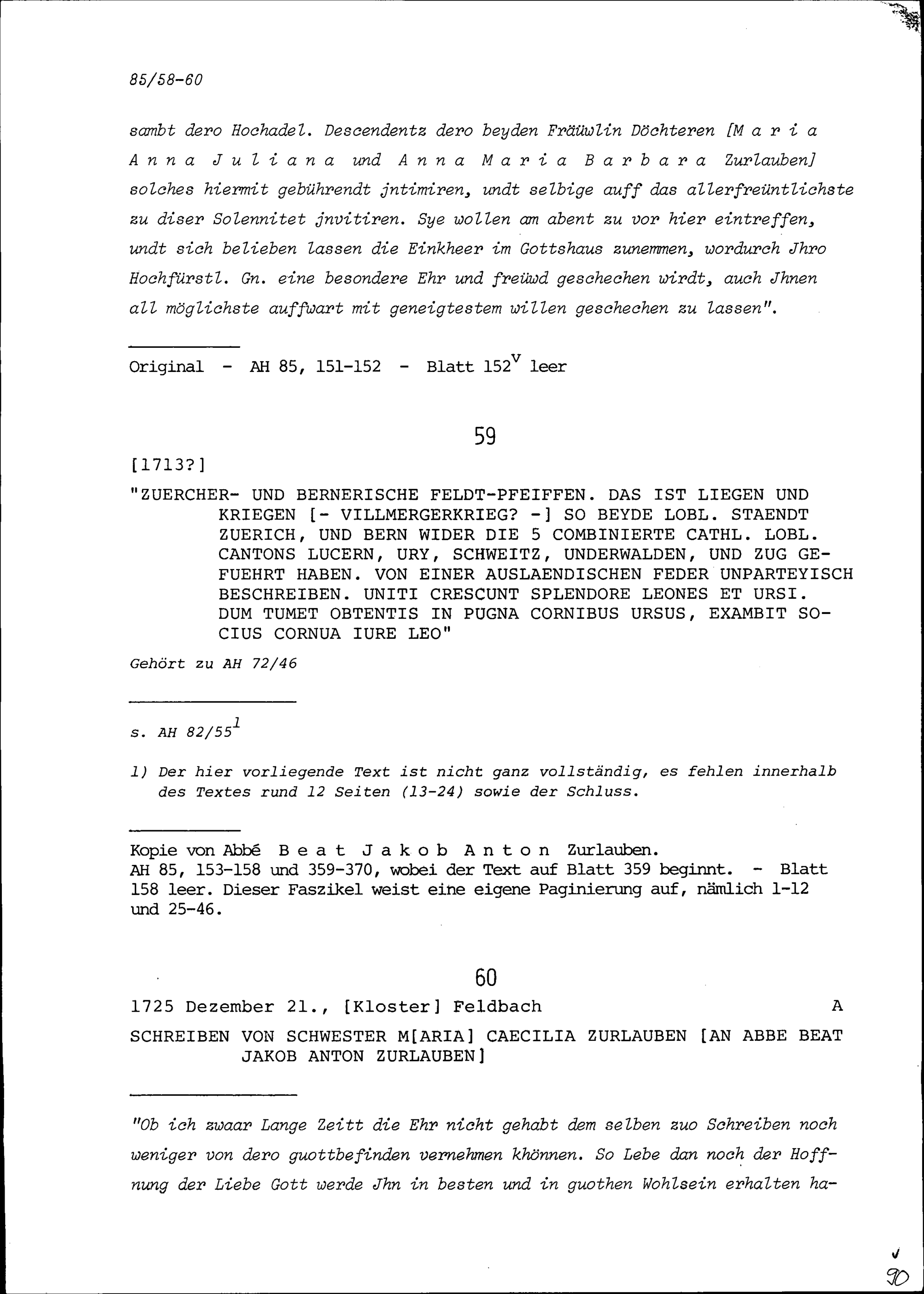 Schmähschrift von Martin Borner, Kapuzinerpater mit dem Titel: Zürcher und bernerische Feldpfeifen. Dass ist Liegen und Kriegen beyder löbl. Stände Zürich und Bern wider die 5 combinierte löbl. Canton Lucern, Uri, Schweiz, Unterwalden, und Zug […]
