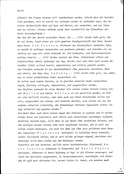 Testament von Johann Baptist Zurlauben
