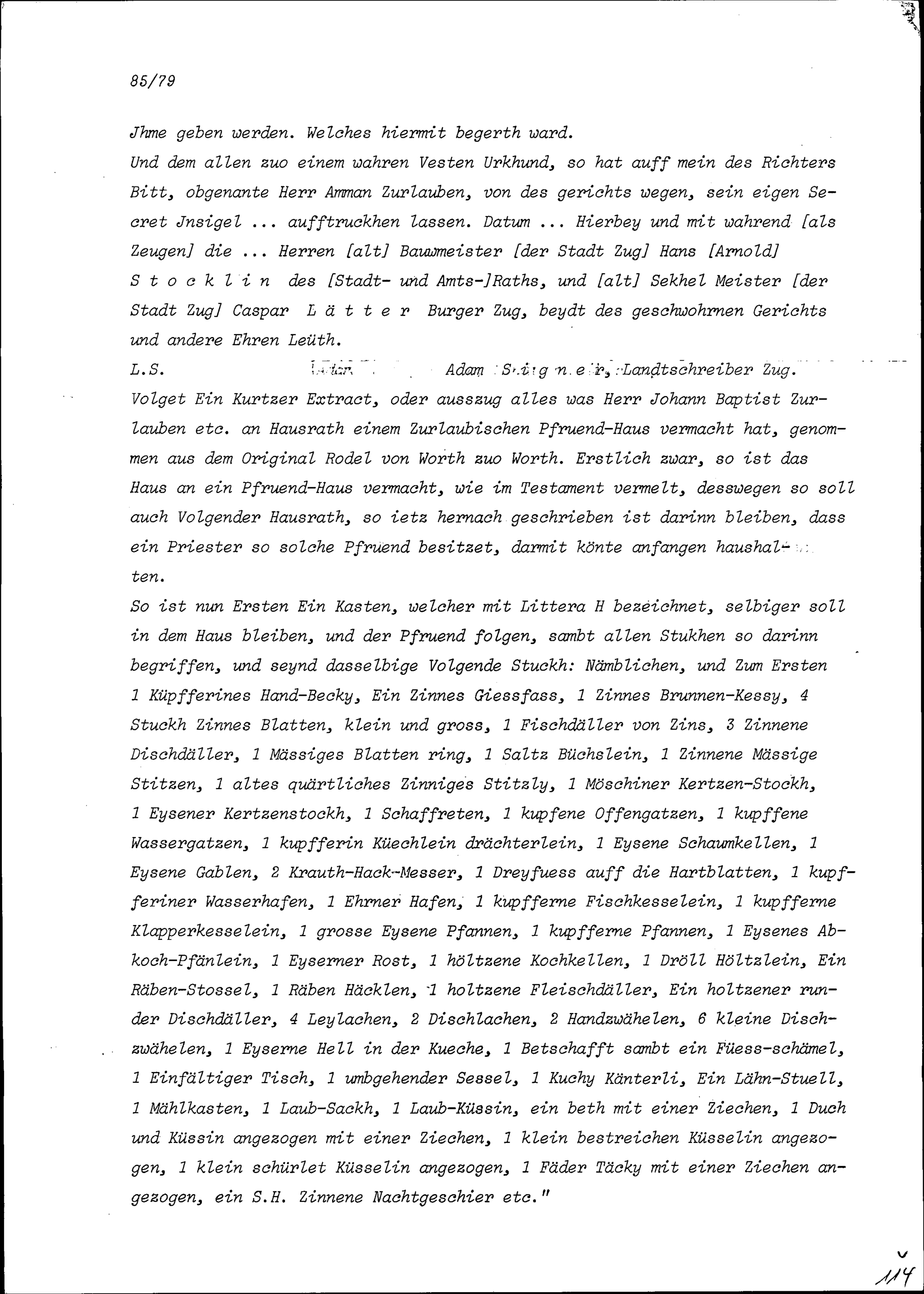 Testament von Johann Baptist Zurlauben