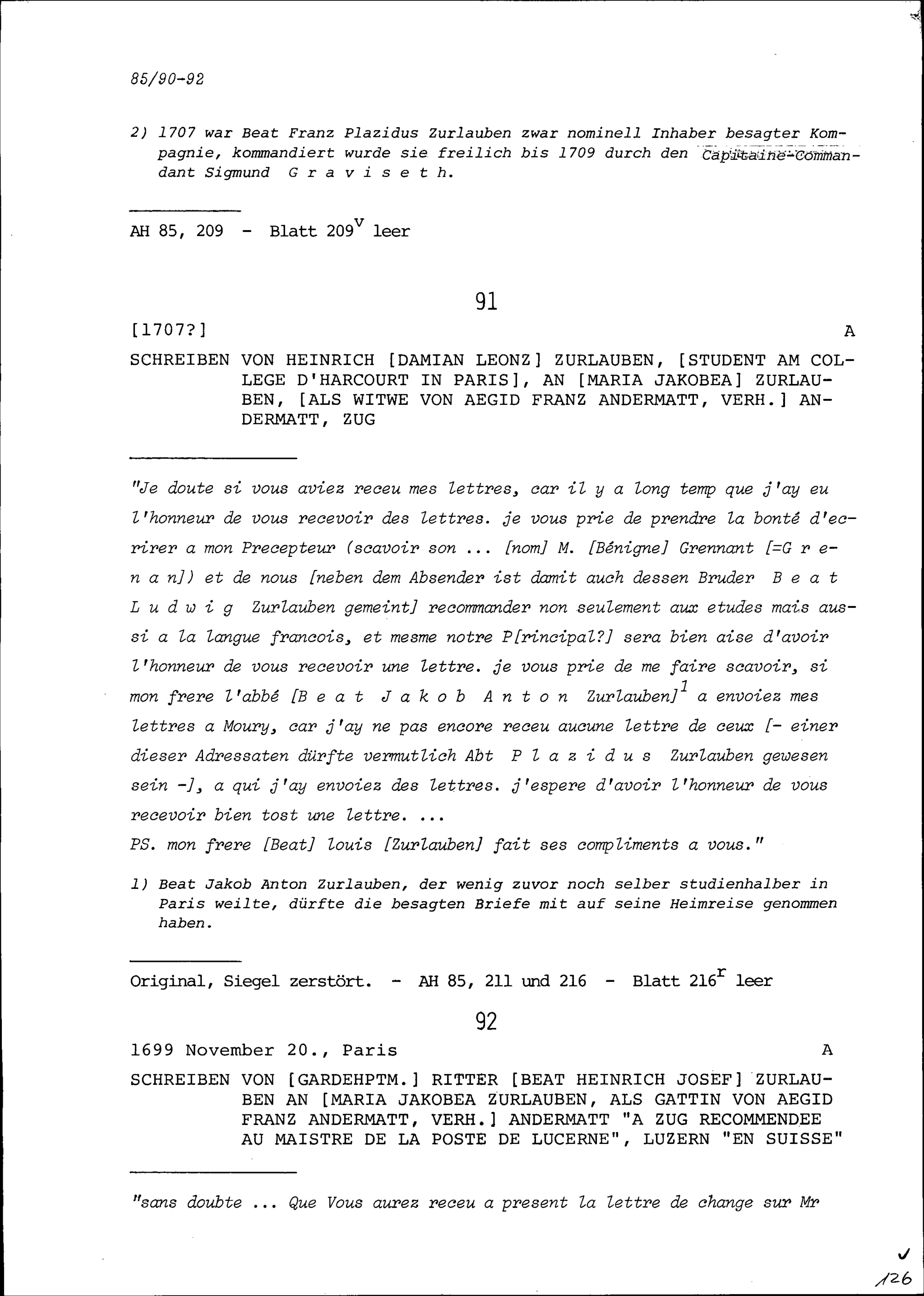 Schreiben von Heinrich Damian Leonz Zurlauben, Student am Collège d'Harcourt in Paris,...