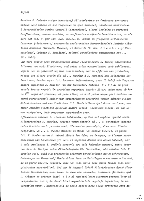 Zur Wahl und Weihe von Bernhard Keller, Abt von Wettingen, zuhanden von Francesco Boccapaduli, Nuntius