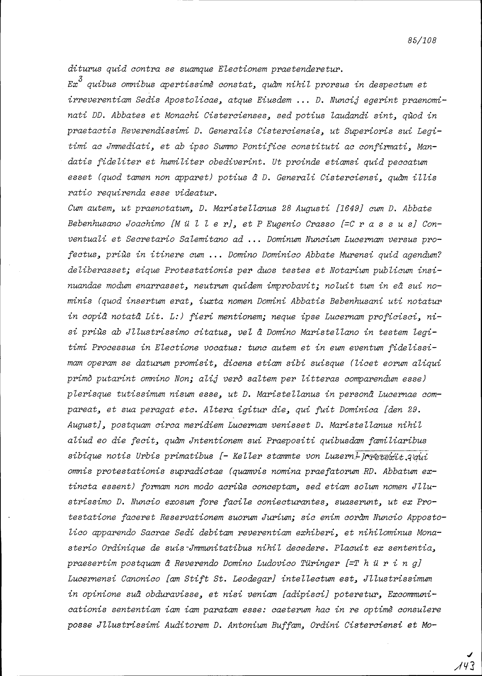 Zur Wahl und Weihe von Bernhard Keller, Abt von Wettingen, zuhanden von Francesco Boccapaduli, Nuntius