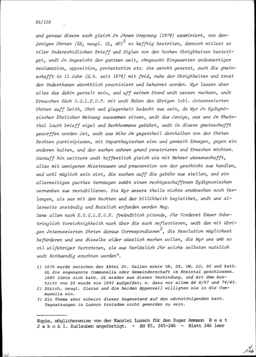 Schreiben von Gallus II. Alt, Fürstabt von Sankt Gallen, an Schultheiss und Rat Luzern, Vorort der Katholischen Orte
