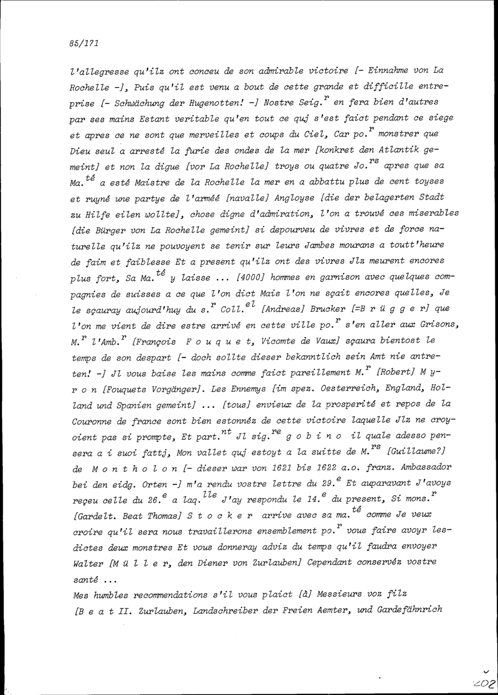 Schreiben von Barthélémy Rolland an Konrad III. Zurlauben, Hauptmann, Altammann und...