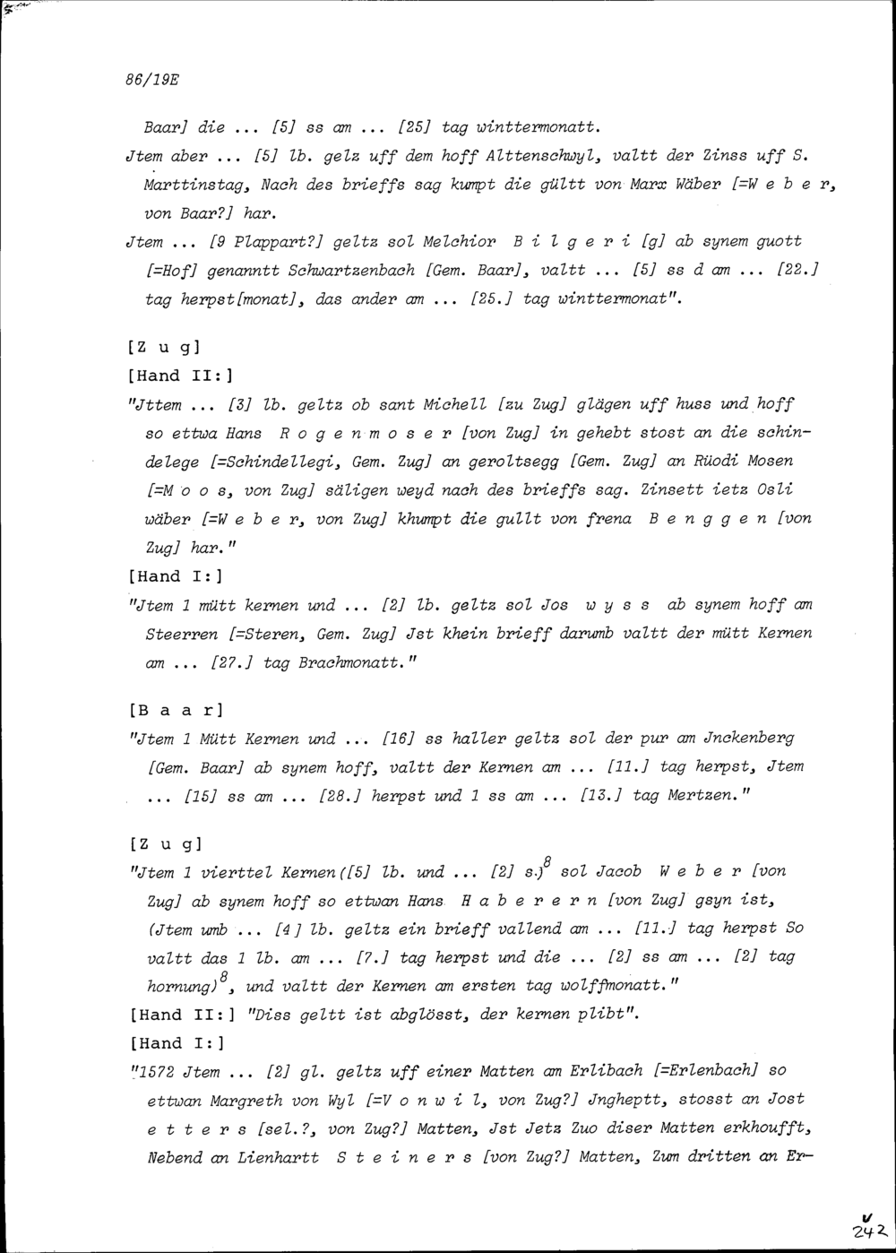 Zinsrodel der Kirche Sankt Michael, Zug, nach dem Jahrzeitenbuch