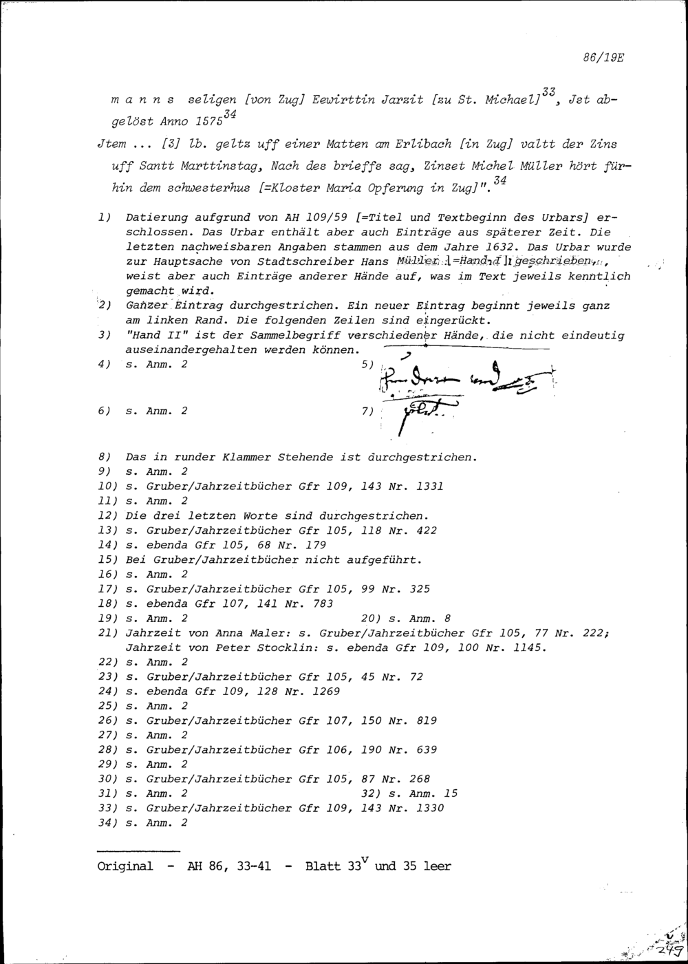 Zinsrodel der Kirche Sankt Michael, Zug, nach dem Jahrzeitenbuch