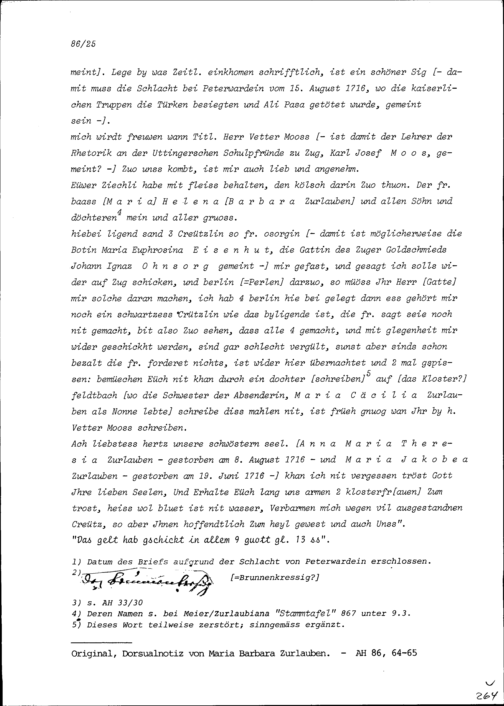 Schreiben von Maria Euphemia Zurlauben, Äbtissin von Tänikon, an Maria Barbara Zurlauben