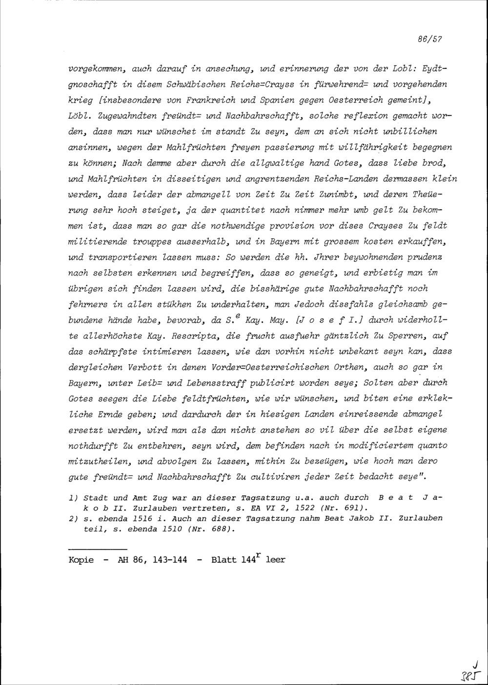 Schreiben der Fürsten und Stände des schwäbischen Kreises an die Gesandten in Baden