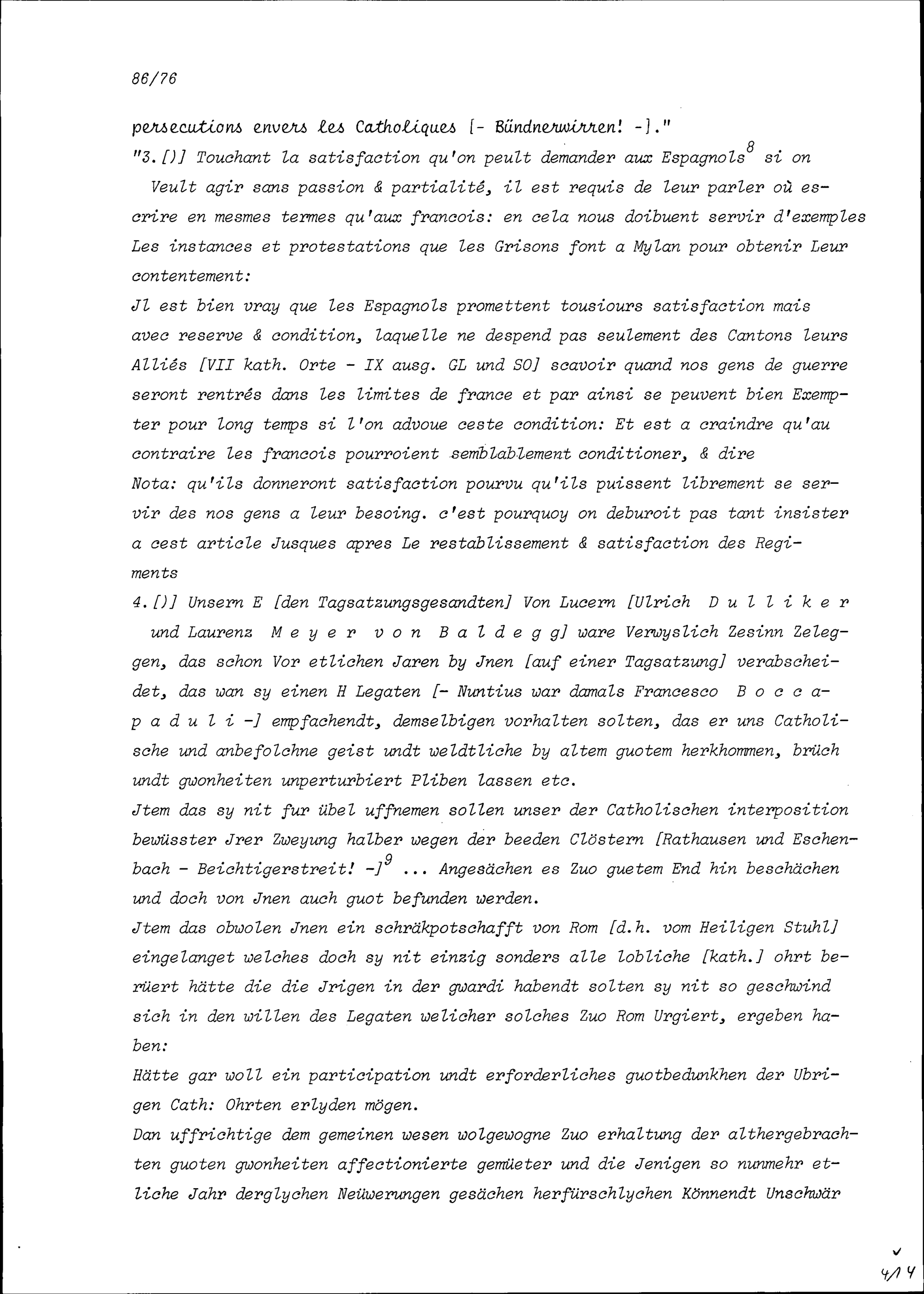 Bericht, verfasst von Beat II. Zurlauben, Stadt- und Amtrat Zug, zur Tagsatzung der Dreizehn Orte in Baden